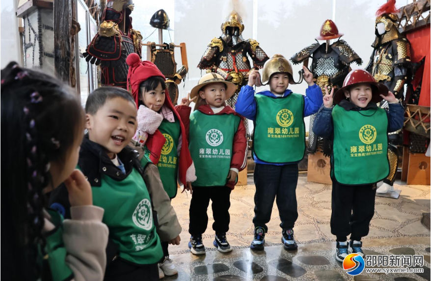 展览现场,幼儿园的小朋友们在老师的带领下,兴致勃勃地参观。孩子们的眼睛里闪烁着好奇的光芒,当看到威武的甲胄时,兴奋不已。有的小朋友还忍不住戴上甲胄的帽子,仿佛瞬间化身成了古代的将军,感受着那份威武与豪迈。他们被甲胄的威武和民族服饰的美丽所吸引,充满好奇地观察着每一件展品。这一举措,不仅让孩子们从小接触传统文化,更是一种文化传承的生动实践。