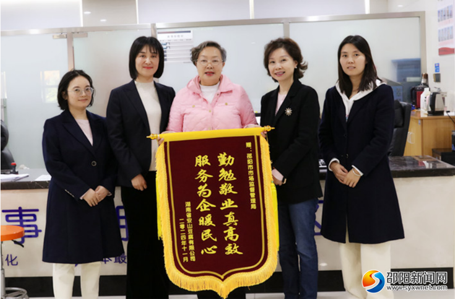 邵阳新闻网12月5日讯(通讯员 金小柯)12月3日下午,湖南省安山豆腐有限公司负责人将一面写有“勤勉敬业真高效 服务为企暖民心”的锦旗送到邵阳市政务服务大厅,感激地拉着市场监管窗口工作人员的手说:“虽然之前都是通过电话在联系,可是我总觉得跟你们好像很熟很熟了,感谢你们不厌其烦地帮助我们,指导我们,让我这么快能拿到许可证。”