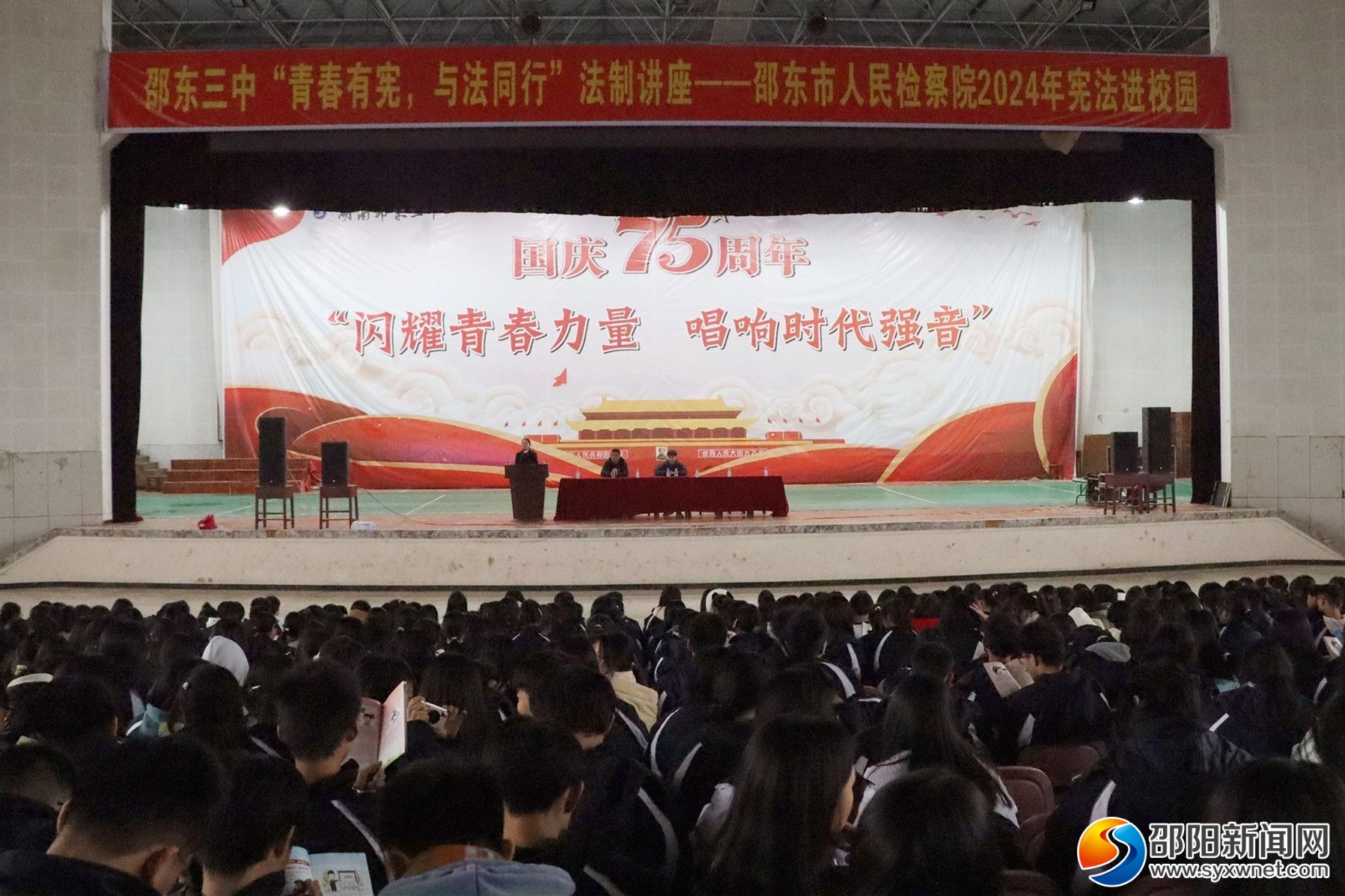 邵阳新闻网12月9日讯(通讯员 黄艳君)12月6日,邵东市人民检察院的检察官走进邵东市第三中学,为高一的同学们开展“青春有‘宪’ 与法同行”宪法宣传活动。