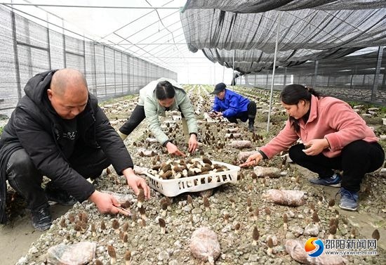 “自从家门口有了羊肚菌种植基地,无论是种植还是采摘,都可以到基地季节性务工。近段时间,来基地采摘羊肚菌,一天收入可达100多元,不出村就能挣到钱。”合作社社员邹如凤兴奋地说。“我们这个地方土壤肥沃,加上智能大棚可控温,非常适宜羊肚菌生长。我们使用有机肥,产出的羊肚菌外形好、品质更好,个头大、壁厚,大的二三两一朵。现在每斤鲜菌售价60元,销往县内各大超市、酒店。同时还可利用烘干机,把它烘干之后储藏到冷库,通过电商平台销往全国各地。”邹平初告诉笔者。