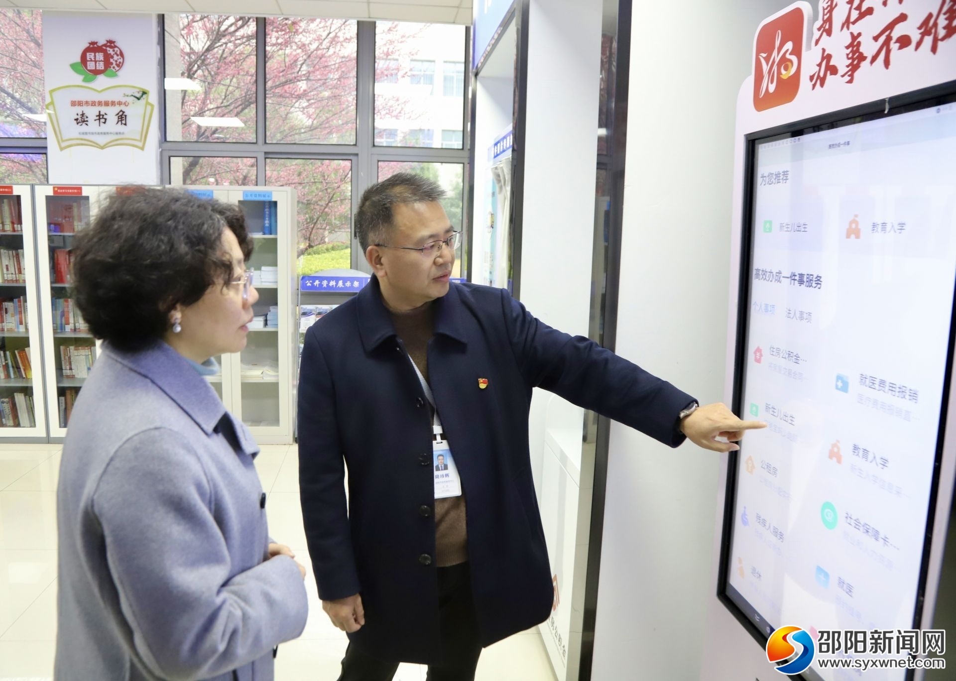 程蓓在市政务服务中心大厅了解“湘易办”线上操作情况