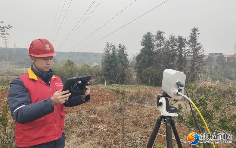 邵阳新闻网2月25日讯(通讯员 胡兴 莫梦娜)“报告,设备调试已完成,目标已锁定,请求开始消缺。”2月24日,国网邵阳供电公司输电检修工作人员姜韬在110千伏隆天线2号杆塔使用激光炮清除树障。