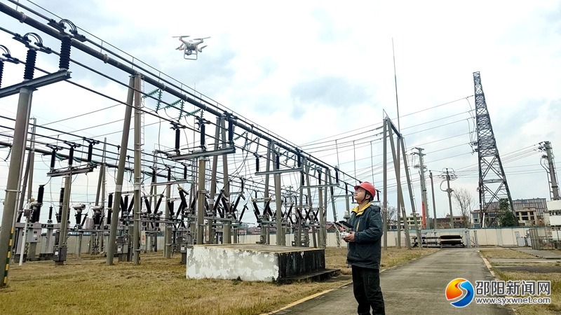 邵阳新闻网3月19日讯(通讯员 罗屹豪 刘玉洁 莫梦娜)3月18日,在220千伏檀江变电站,国网邵阳供电公司运维人员彭凯正在使用无人机对变电站进行巡视。这标志着该公司变电站“空+地”立体运维防护网更加完备,邵阳地区主网设备运维智能化再上新台阶。