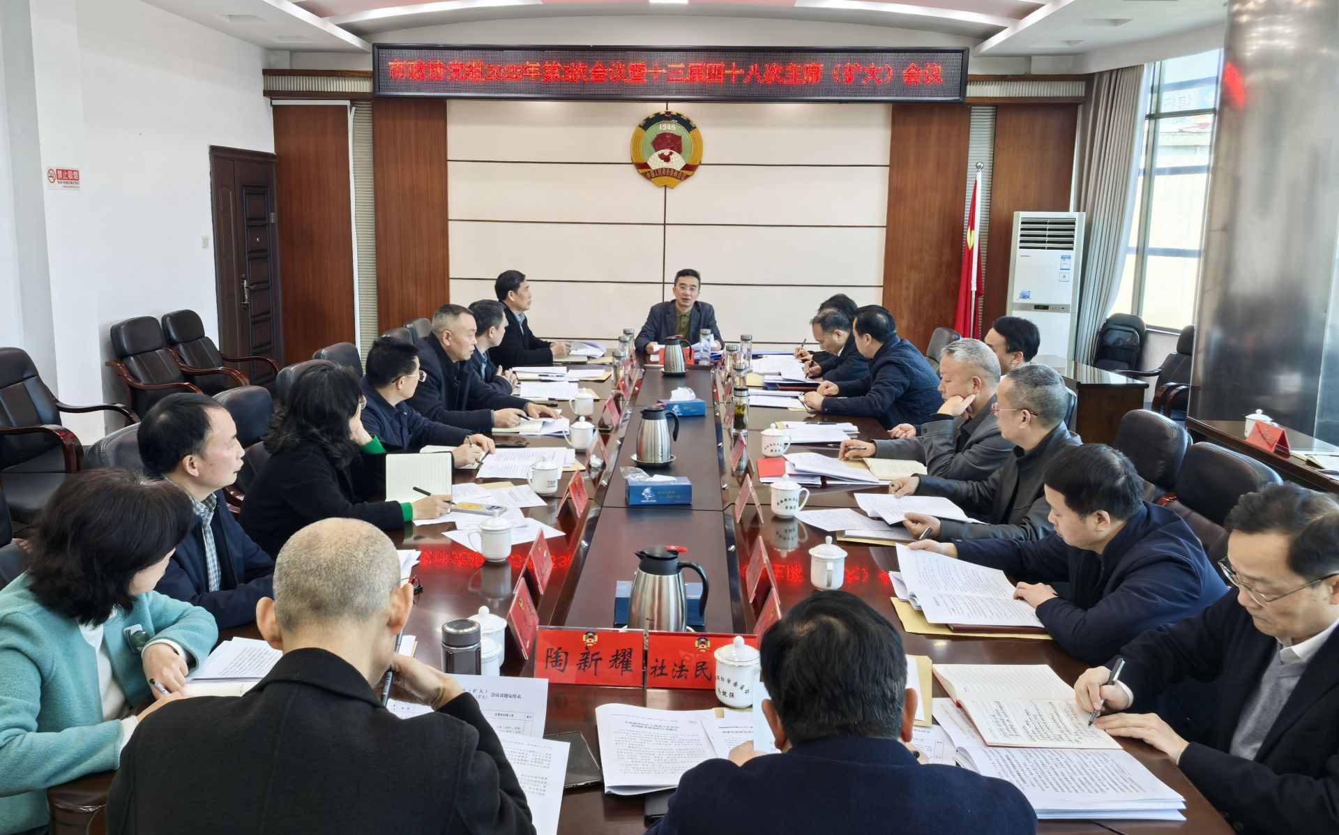 邵阳新闻网3月20日讯(记者 周超)3月19日,市政协党组书记、主席周文主持召开市政协党组(扩大)会议暨十三届四十八次主席(扩大)会议。市政协副主席段雪梅、伍先明、杨博理、孙清良、蒋志南、冯东旺,秘书长王大松参加。