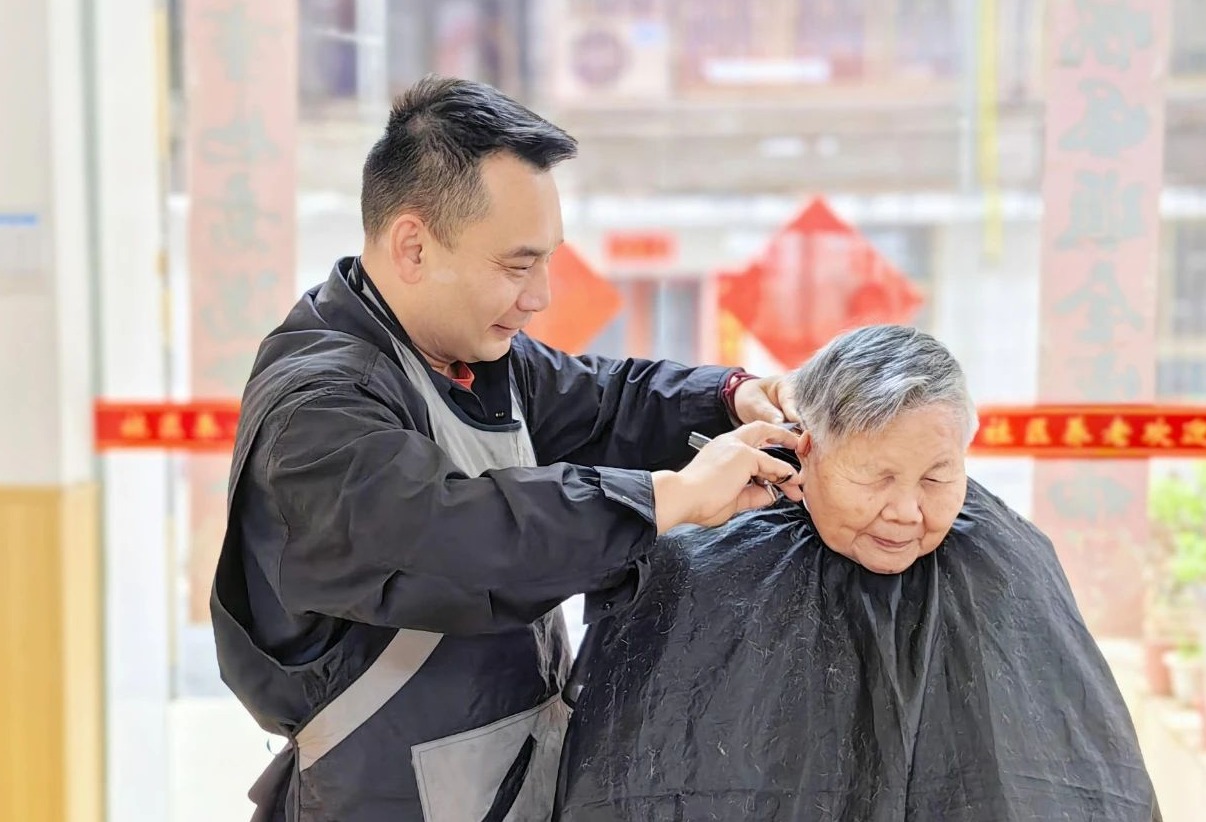 戴理与养老机构老人的结缘,源于对外婆的深深思念。戴理的外婆晚年时住在养老院,戴理常去探望,并亲自为她修剪头发。外婆去世后,戴理心中那份对老人的关爱并未消散,反而愈发强烈。他决心用自己的手艺,为更多需要帮助的老人带去便利与快乐。于是,他开始上门为身边朋友家中行动不便的老人剪发,这份爱心逐渐传开。2023年的一天,当戴理得知大祥区城北街道居家和社区综合养老服务中心正在寻找一位能提供上门服务的专业理发师时,戴理主动联系了机构负责人,表示此举只为圆梦,不为谋利。从此,戴理便成为了该养老服务中心里的特约义工理发师。理发开始了,只见戴理将老人搀扶上理发凳,贴心地为老人围上围脖纸,披上围布,然后拿起剪刀和梳子,开启他的“爱心义剪”。戴理说,为养老服务中心的老人们理发,不同于普通的理发,老人们大多行动不便,且老人习惯戴帽子,头发受压紧贴头皮,给理发增加了不少难度。“有些老人后脑勺头皮松弛形成一层层褶皱,剪发时需格外小心,不能把老人家伤到了。”说话间,戴理一手拿着梳子,一手握着剪刀,小心翼翼地修剪着曾腊秀老人的头发。“虽说老人们年纪大了,但是都有一颗爱美之心,这些奶奶们对发型的要求还是很高的,必须又好打理又好看!”每剪下一缕发丝,戴理都仔细梳理观察,确保剪出的发型符合老人们的审美。凭借丰富的经验和细腻的观察力,戴理已经能够记住每位老人的发型偏好。当轮到99岁的彭连珍老人时,尽管连续站立3个多小时让戴理的腰有些疼痛,但他依然坚持着,时而蹲下,时而弯腰,确保完美完成今天的义剪任务。剪完后,彭连珍老人紧紧拉着戴理的手,一个劲地竖着大拇指,为他的耐心服务点赞。理发过程中,戴理不时与老人们交谈,询问他们的身体状况,分享生活中的趣事。有老人家说要多修短点,他耐心地解释道:“天刚转暖,头部还需要保暖,等下个月天气彻底暖和了就可以修短一些了!”大祥区城北街道居家和社区综合养老服务中心的负责人介绍称,该中心目前居住着20位老人。戴理为这些老人理发一次,往往需要耗费近4个小时。在过去的两年里,戴理始终坚守承诺,坚持每个月至少上门义剪一次。随着时间的推移,戴理与老人们之间建立起了难以割舍的深厚感情。“看到养老中心的这些老人,就好像看到我外婆一样。我非常珍惜和老人们剪发共处的这些时光,想陪他们聊聊天,温暖他们的过程,也治愈了自己。”“老人们跟我说的最多的两个字就是‘谢谢’,这两个字在我心里的分量很重,很多感情是不能用言语来表达的。”有着26年理发经验的戴理坦言,第一次上门给老人们剪头发的时候,既兴奋又紧张,不同于现在的游刃有余,那时还有点手足无措。“我会一直剪下去。”戴理说,邵阳有许多养老中心都需要专业的理发师提供上门的理发服务,他希望能够将这份爱心传递下去,发展成一个义剪团队,为更多的老人带去便利与温暖。