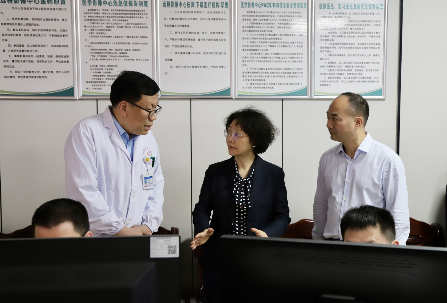 程蓓在新邵县人民医院调研医共体医学影像诊断中心发展建设情况。