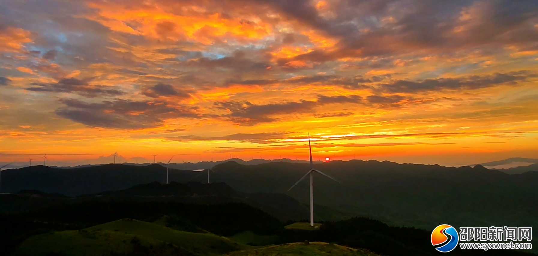 邵阳新闻网5月13日讯(通讯员 唐芳艳 刘哲)5月11日傍晚,随着夕阳缓缓沉入地平线,绥宁县宝鼎山惊现绝美晚霞,宛如一幅绚烂神秘的画卷,蔚为壮丽。在延时摄影镜头下,每一帧都定格了晚霞变幻莫测的美。金色的阳光与五彩斑斓的云雾交织在一起,仿佛是大自然的调色盘倾泻而下,将宝鼎山装点得分外妖娆。在霞光的映衬下,山间的树木、远处的山峦与转动的风车,如同披上了一层神秘而浪漫的面纱,让人沉醉在这如诗如画的初夏晚霞之中。