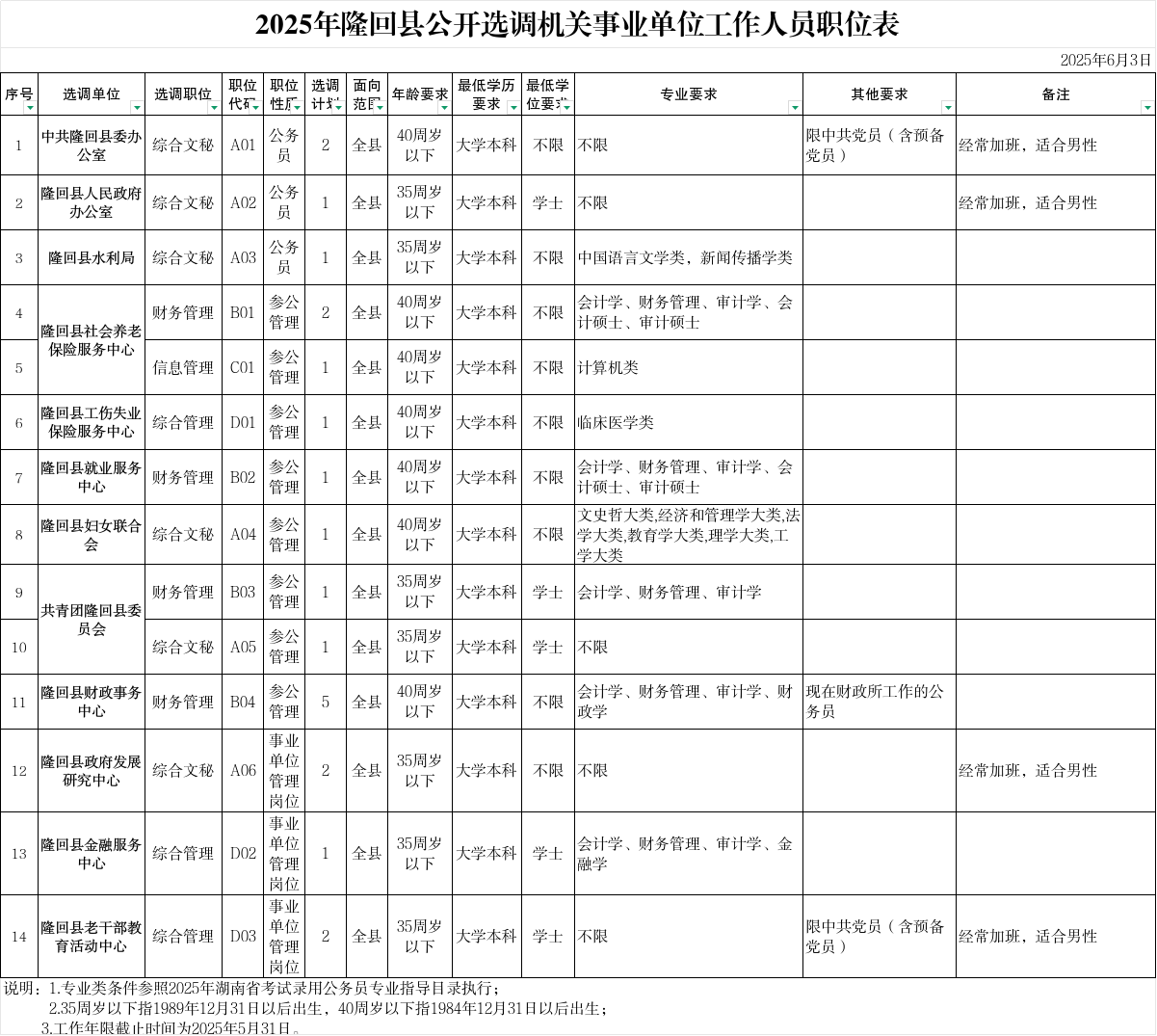 2025年隆回县公开选调机关事业单位工作人员