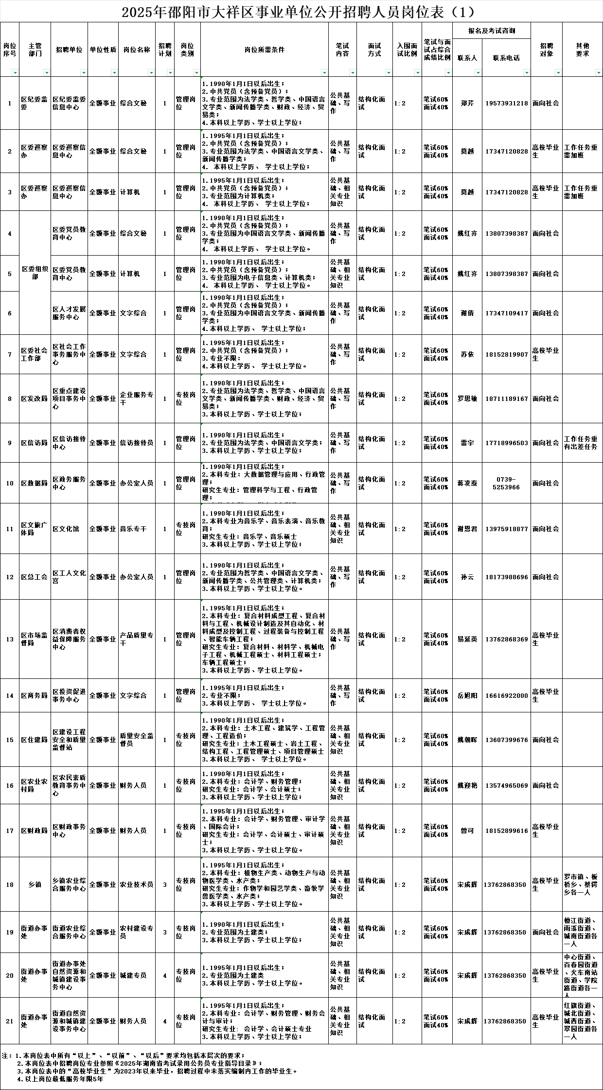 2025年邵阳市大祥区事业单位公开招聘工作人员