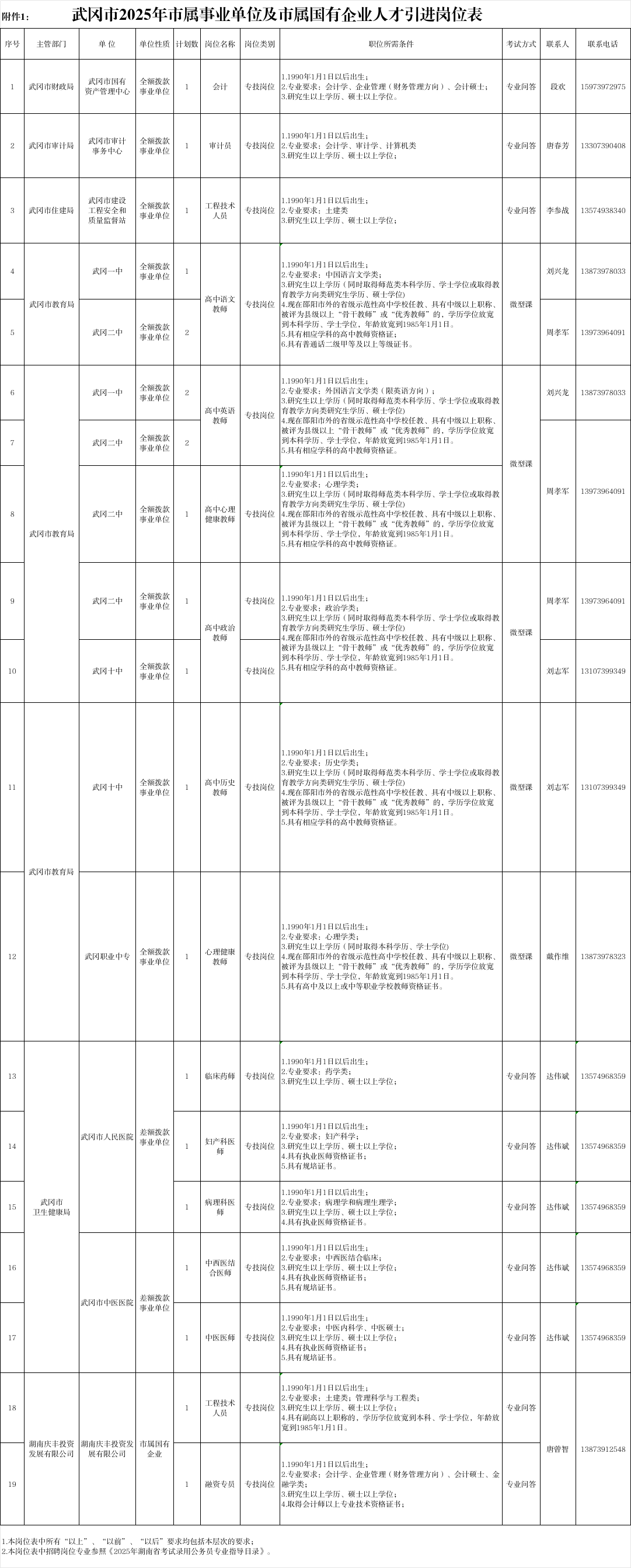 武冈市2025年市属事业单位及市属国有企业人才引进