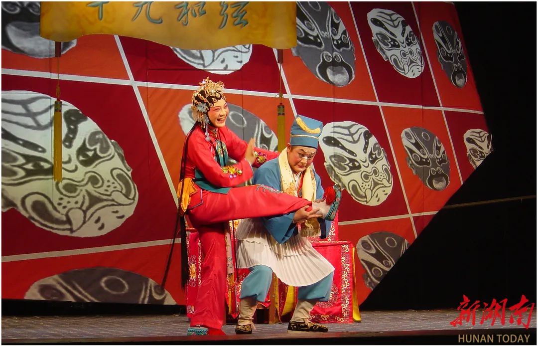 演员在表演邵阳花鼓戏《磨豆腐》。