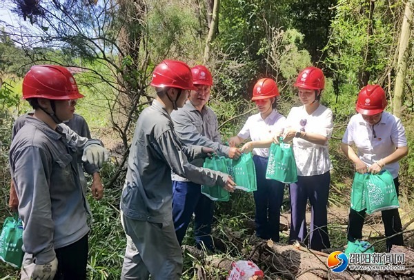“天气炎热,大家一定要注意生产安全,做好个人防暑降温防护,辛苦了。”新邵供电公司工会负责人走进员工中间,为他们送上矿泉水、人丹、风油精、王老吉等防暑解渴“清凉包”。她仔细查看砍青工作进展,关切地询问员工们的身体状况,再三叮嘱大家要劳逸结合,尽量避开高温时段作业,增强自我防护意识,防止高温中暑。“感谢领导的关心关爱。请领导放心,我们一定会保护好自己,也一定会为老百姓的夏季用电贡献力量。”接过慰问品,小塘供电所员工张如意脸上洋溢着笑容,声音中充满了坚定。