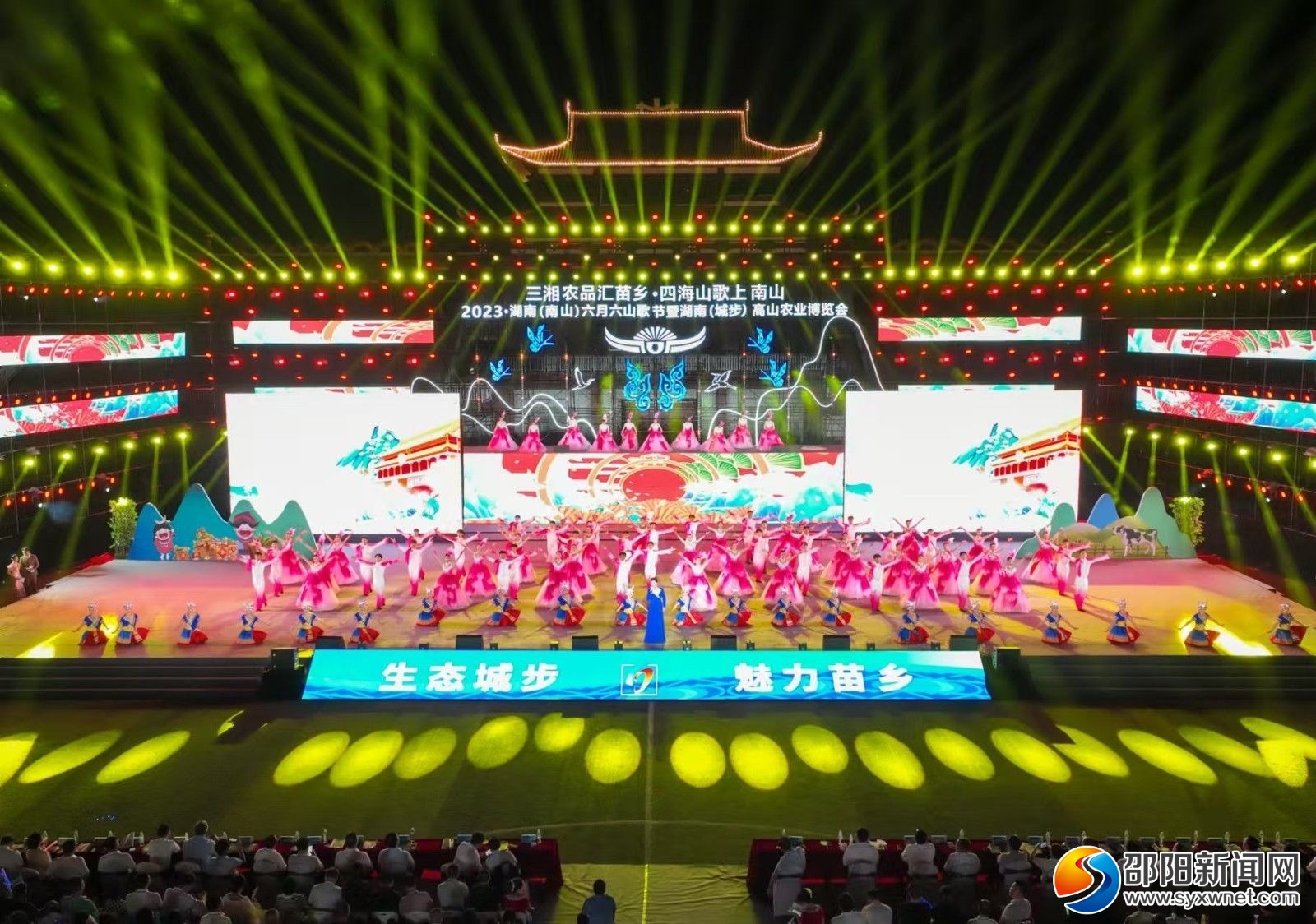 图为2023•湖南(南山)六月六山歌节暨湖南(城步)高山农业博览会开幕式暨文艺演出现场