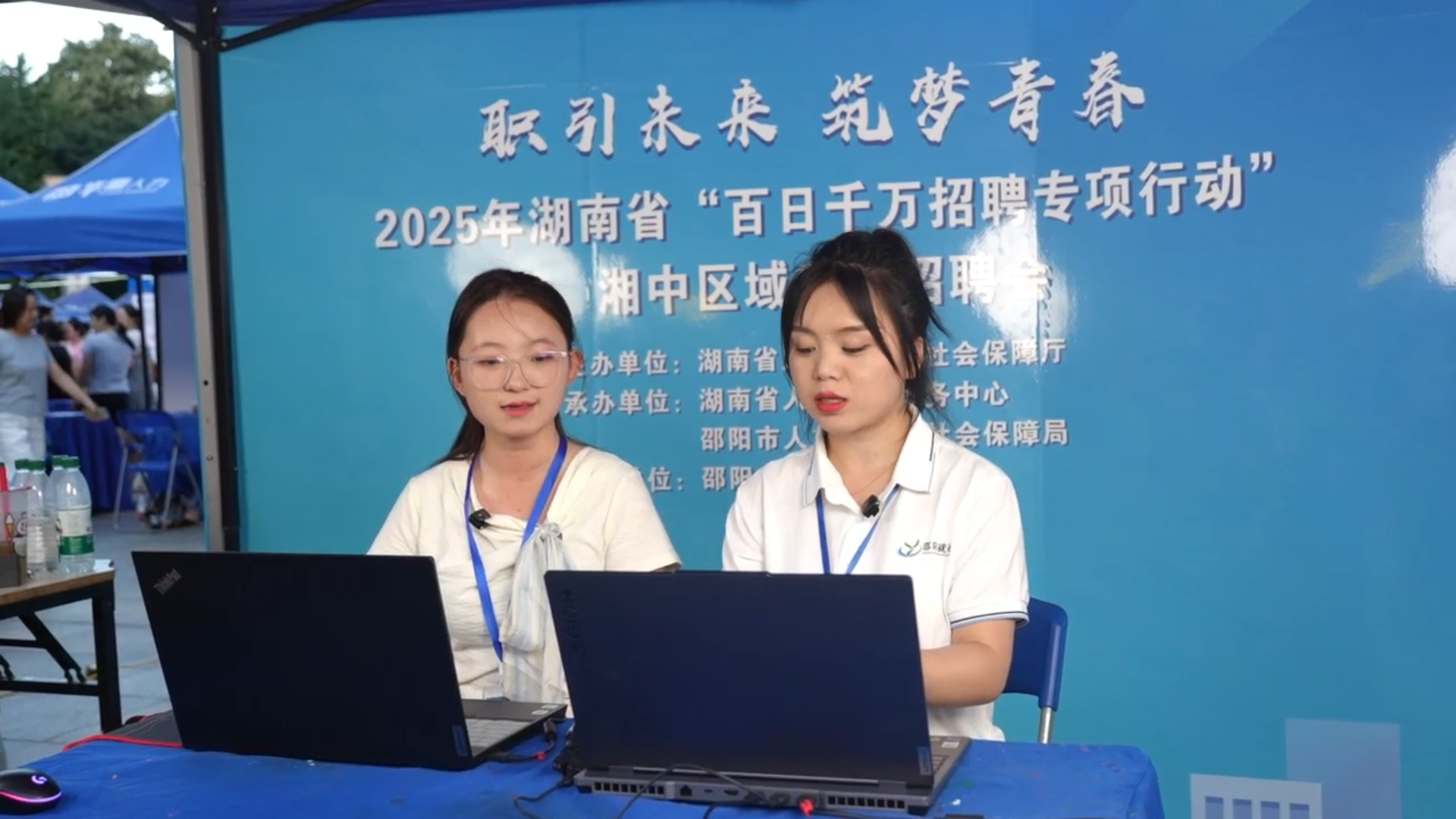 “家人们看过来!这家新能源企业招机械设计师,月薪8000起,缴纳五险一金!”活动现场,“直播带岗”区的主播在镜头前热情介绍,屏幕里的岗位信息清晰可见。作为连接企业与求职者的“云端伯乐”,主播们在湖南人社抖音号、湘就业视频号及邵阳就业抖音号等平台同步开播,镜头前的热情讲解与实时互动,累计吸引近20万人次在线观看、留言咨询。