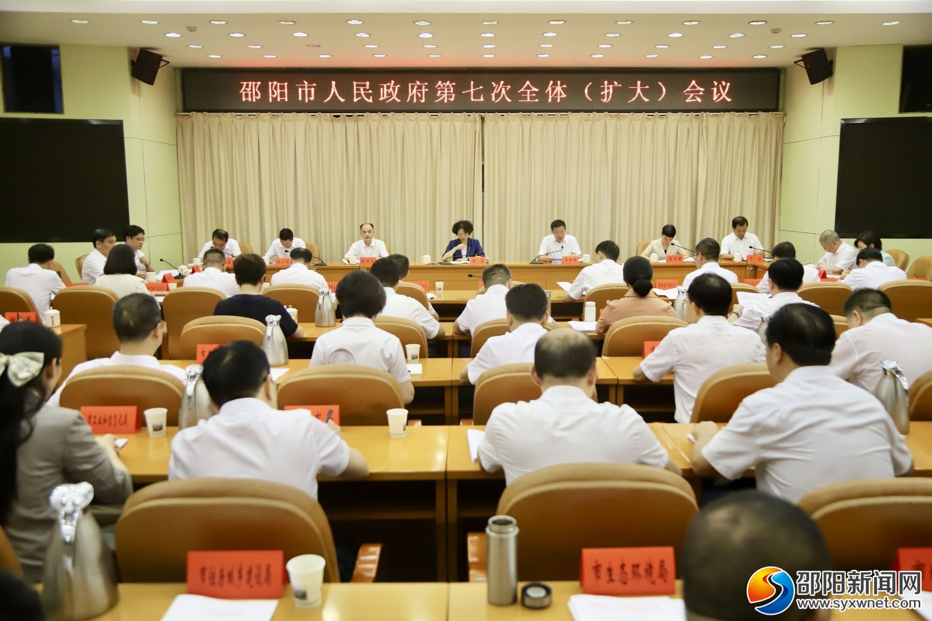 邵阳新闻网7月29日讯(记者 朱力波)7月29日,邵阳市政府召开第七次全体(扩大)会议。会议深入贯彻习近平总书记关于湖南工作的重要讲话和指示批示精神,认真落实省委常委会会议关于上半年经济运行形势分析会、省政府第七次全会精神,以及市委常委会会议关于经济工作的具体要求,总结上半年工作,部署下半年任务,要求全市上下准确把握当前形势,鼓劲加压、担当作为,奋力完成各项工作任务。市委副书记、市长程蓓出席会议并讲话。