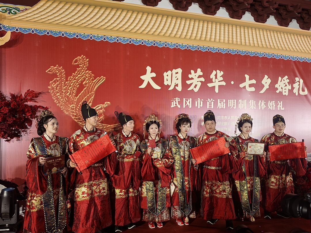 本次活动还成功打造了“文旅 + 集体婚礼”特色IP,将明制婚礼这一传统文化元素巧妙地变为武冈文旅的鲜活载体,让更多人因为这场浪漫的婚礼了解武冈、走进武冈,感受这座城市独特的历史文化魅力。
