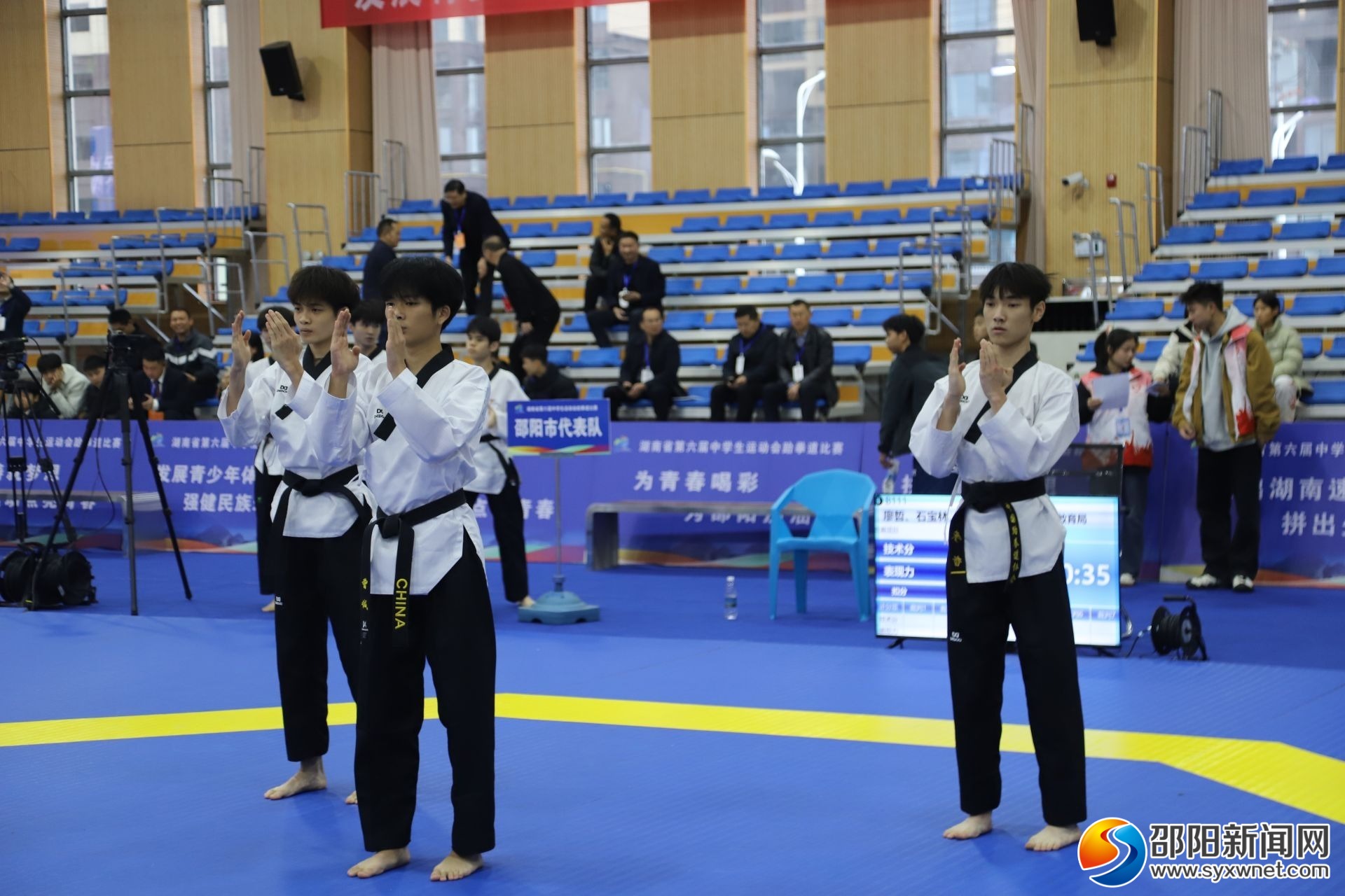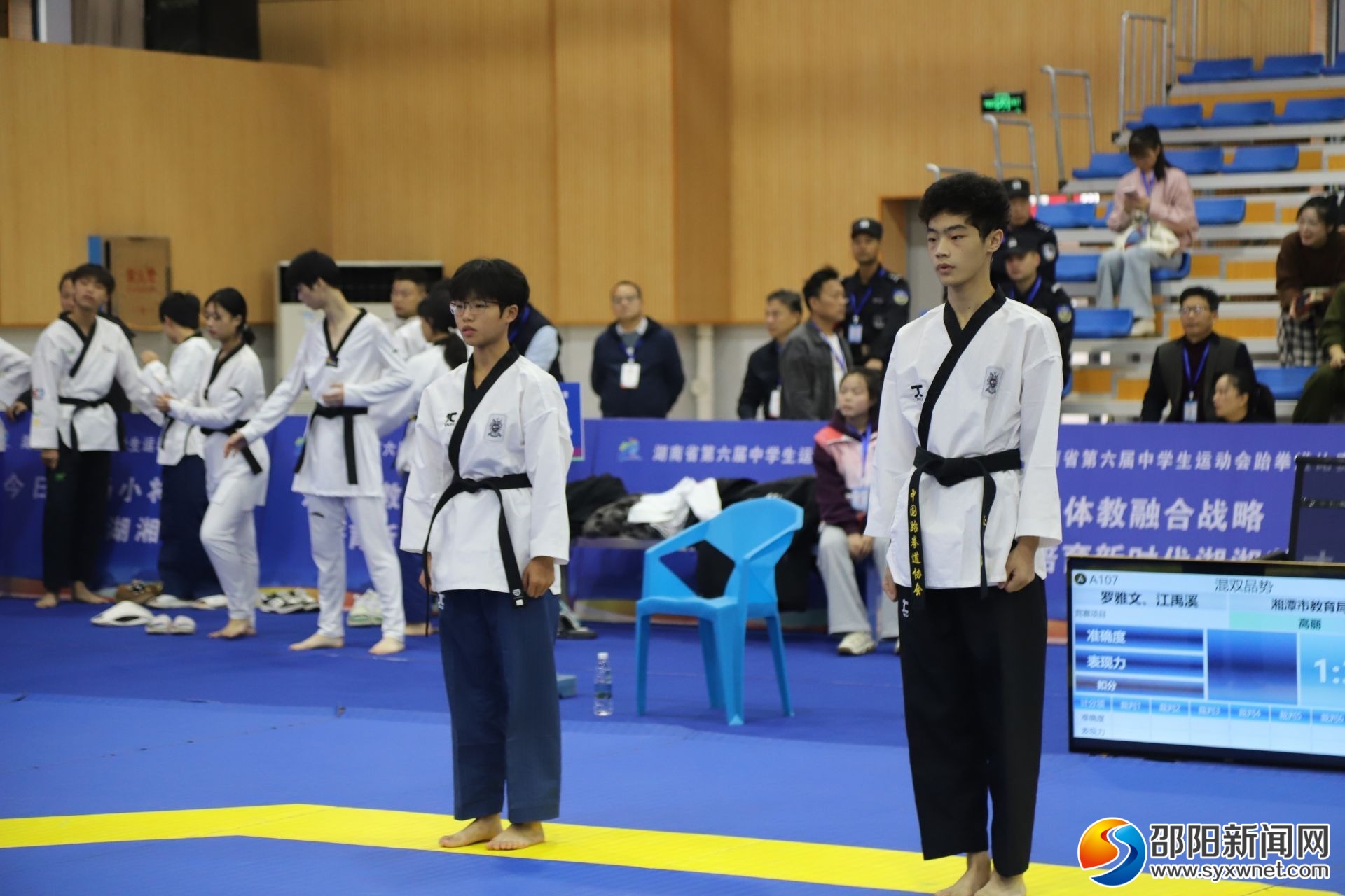 邵阳新闻网10月22日讯(记者 范谢)10月22日,湖南省第六届中学生运动会跆拳道比赛在新宁县第一中学体育馆开赛,来自全省各地的11支队伍共174名运动员参加。