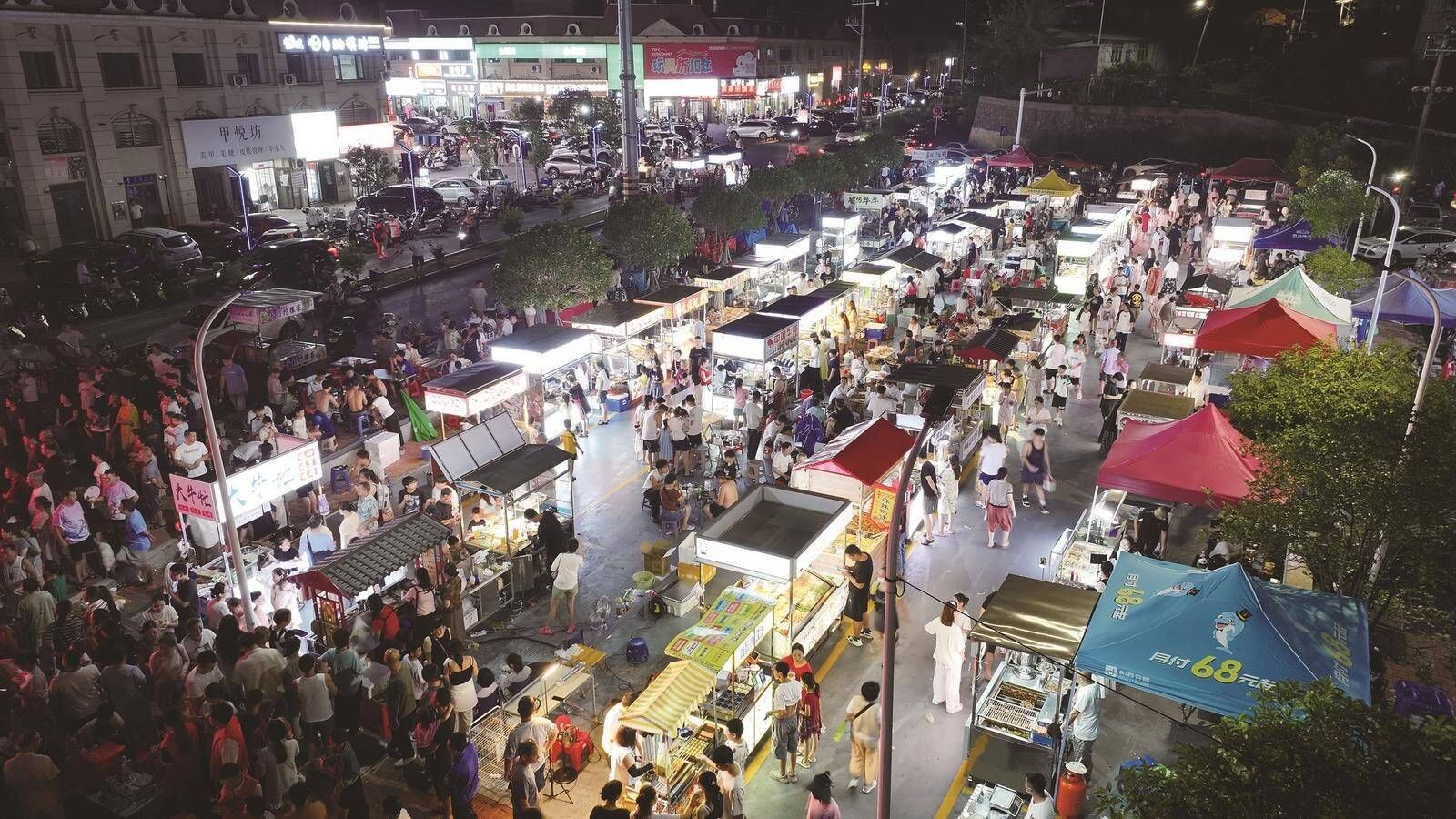 (江北资枣夜市人山人海,一派人间烟火气。)