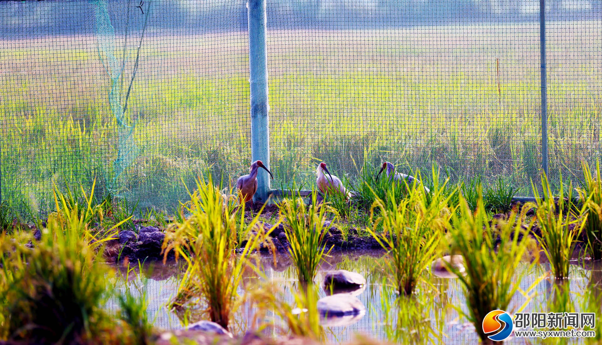 “鱼稻轮作”水田边的朱鹮