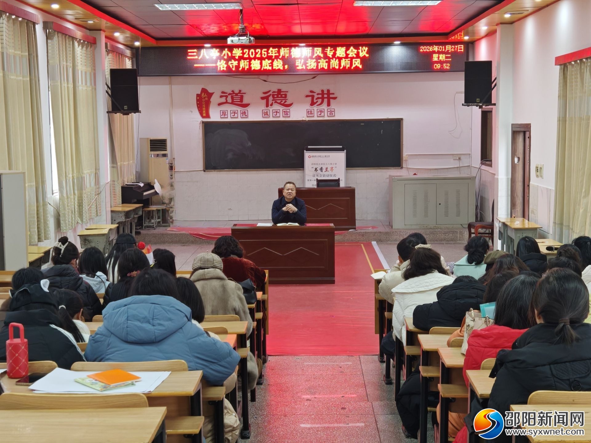 邵阳新闻网1月27日讯(通讯员 朱晨)1月27日上午,大祥区三八亭小学召开法纪与师德师风专题学习会议,全体教职工参加会议。