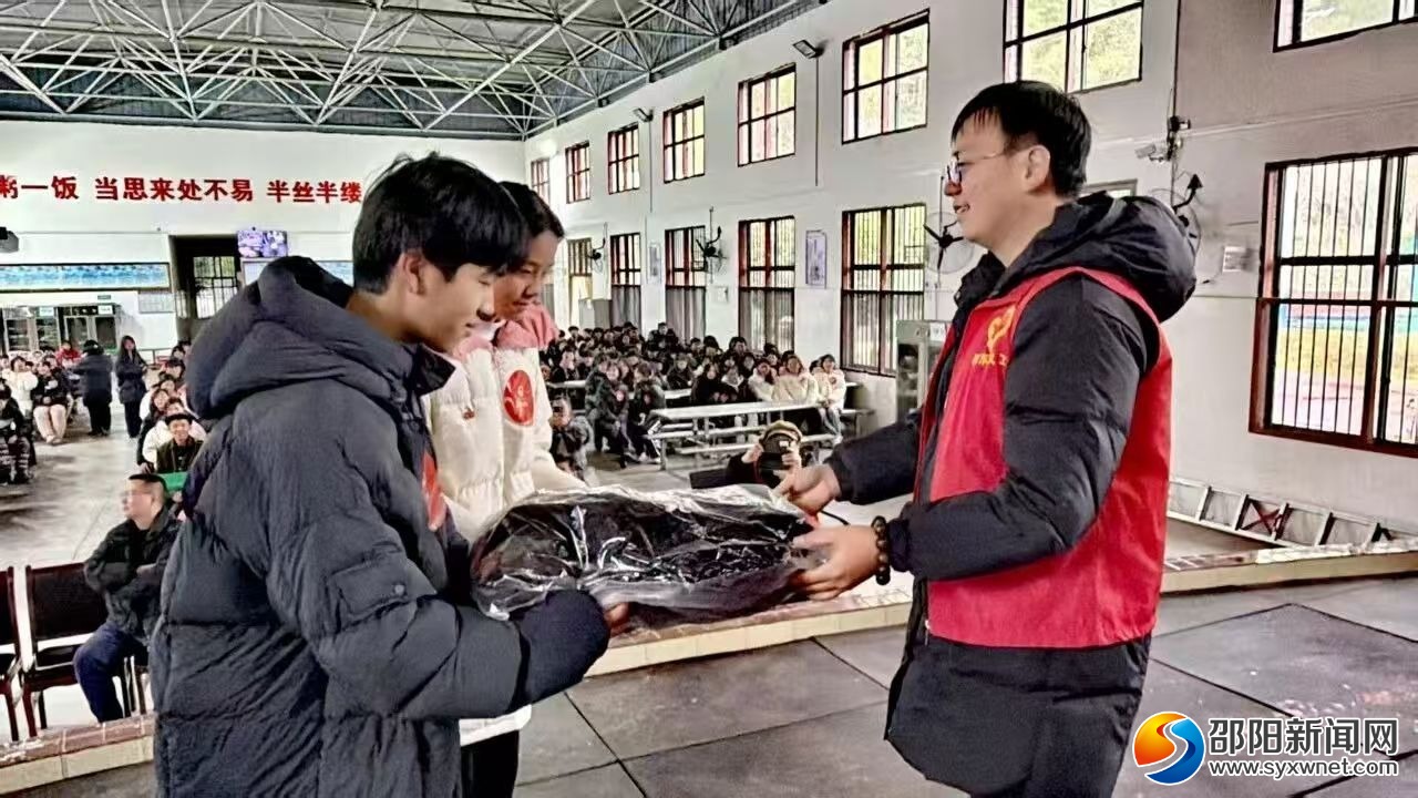 仪式上,邵东市黑田铺镇教师、邵东市爱心义工联合会义工张帅军作为爱心牵线人发言,他深耕乡村助学多年,始终心系山区师生,此次促成企业捐赠,只为让山区孩子温暖过冬。其2025年累计核实265名困境学生信息,结对资助200余名,筹得助学金约75万元,还牵线捐赠运动鞋五千余双,总价值超240万元,持续为乡村教育助力。