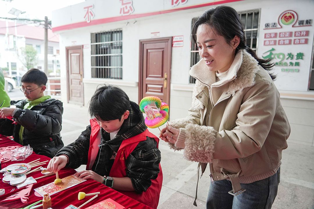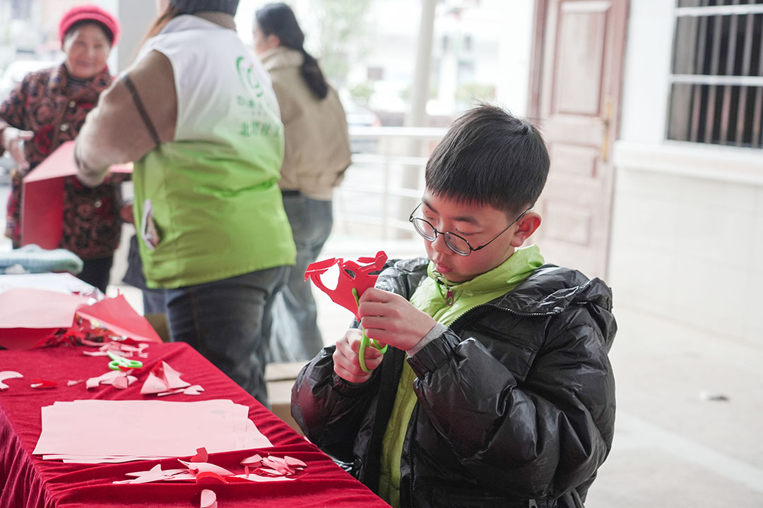 “非遗闹新春”文化体验区热闹非凡。居民们亲手体验非遗拓印新年红包、巧剪窗花、制作纸翻花,在动手过程中感受传统技艺的魅力,洋溢着浓郁的文化气息与节日喜悦。