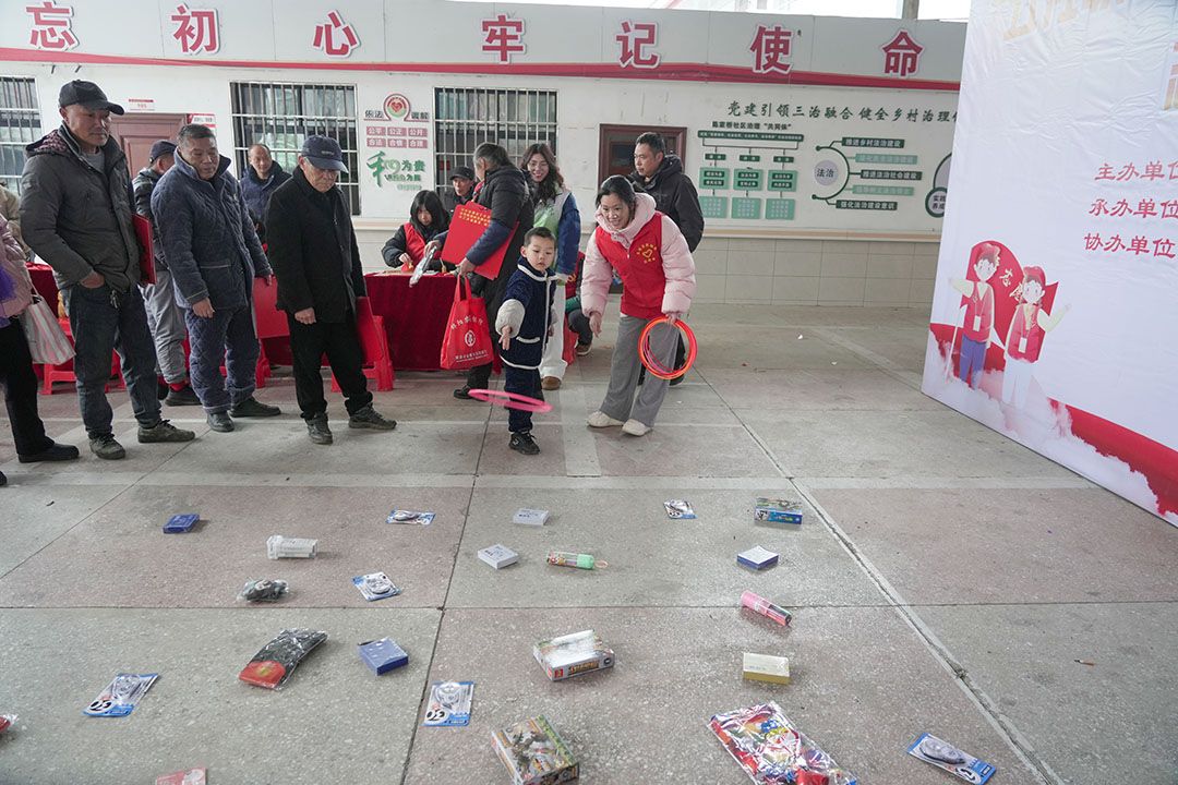 “幸运套圈”游戏区域充满欢声笑语,居民们在轻松愉快的氛围中尝试手气,赢取小礼品,进一步拉近了邻里距离,增添了新春的趣味与活力。