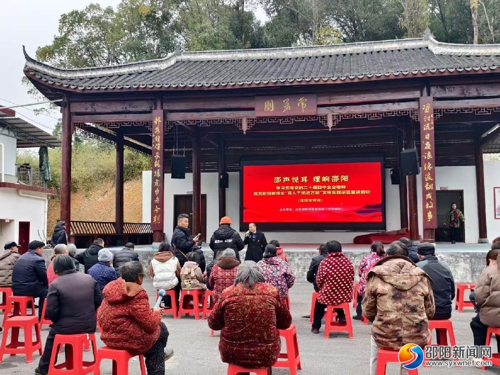 宣讲活动开始前,一场精彩的文艺表演率先拉开序幕。一首红歌舞蹈倾情演绎,瞬间点燃现场气氛,歌曲《天下邵阳红》婉转悠扬、饱含深情,赢得村民阵阵掌声;接地气的小品贴近乡村生活,诙谐幽默中传递正能量,让现场氛围愈发热烈。文艺表演结束后,宣讲正式开始。宣讲团成员结合乡村发展实际和村民生活需求,重点解读了“十五五”规划部署,围绕未来五年就业扶持、养老金保障、科技兴农等村民最关心的民生话题展开详细阐释。宣讲摒弃生硬说教,以“家常话”讲清“大政策”,用“身边事”解读“大道理”,始终紧扣村民切身需求解读宏观政策,用通俗易懂的表达传递政策暖意,让全会精神真正走进村民心里、落到实处。