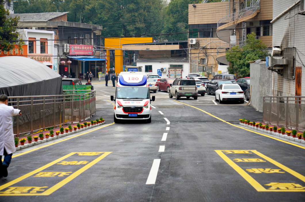 新急救绿色通道贯穿原邵阳市群艺馆停车场,与西湖路直接连通,全长34米、宽12米,宽敞通畅的专属通道大幅缩短了急救车辆的通行、停靠及患者转运时间,从院前转运到院内救治的衔接流程得到进一步优化,实现急危重症患者救治“零延误”,有效提升医院急危重症救治的效率。