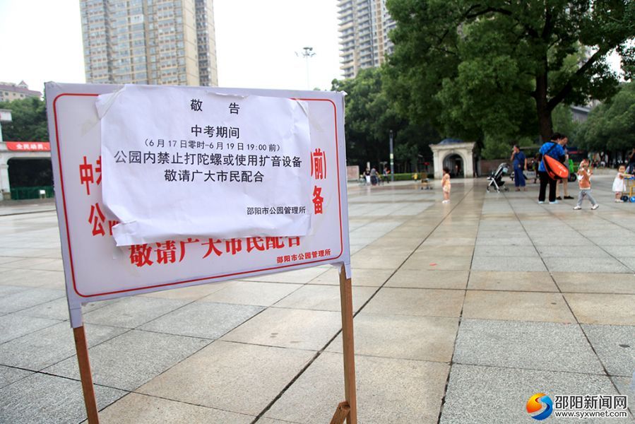 给考生一个安静舒适考试环境公园管理所在城南公园内树立警示牌