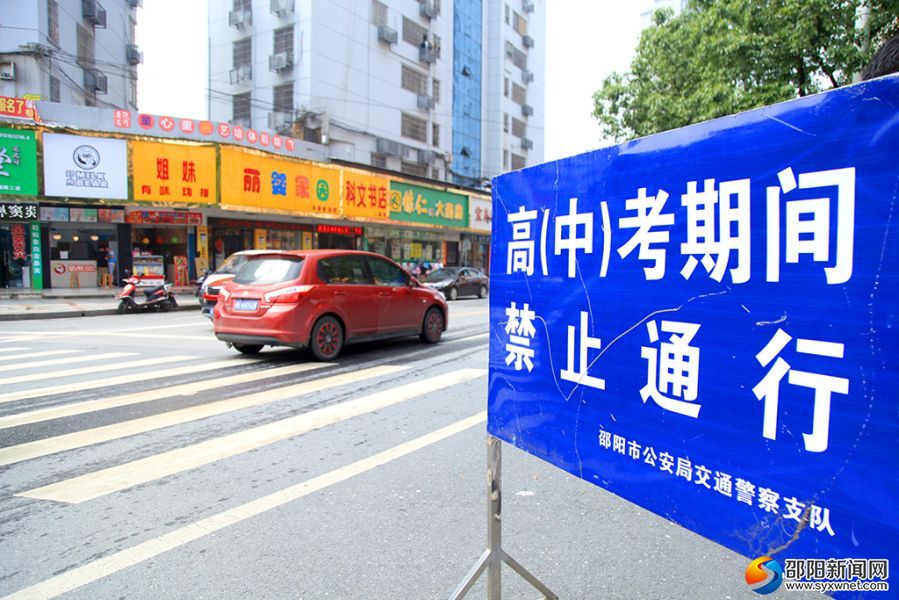 中考期间各个考点路口树立了禁止通行