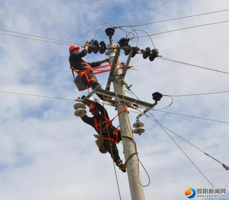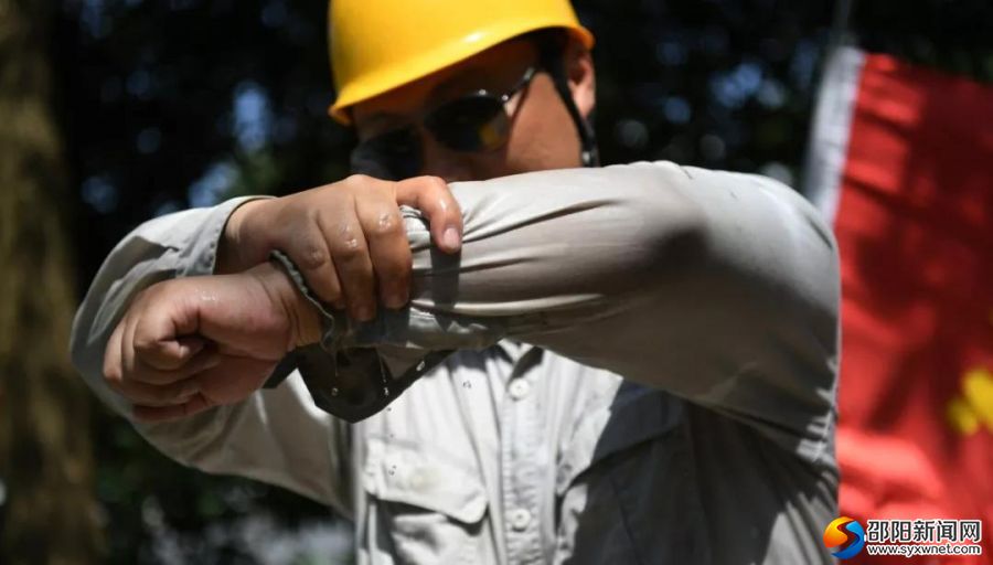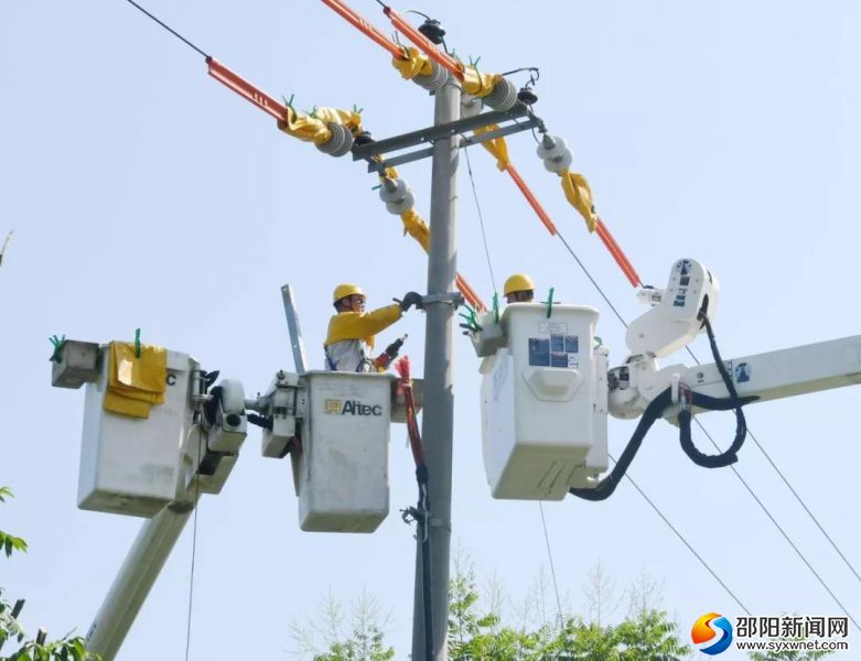 顶着烈日在十几米高空开展带电作业