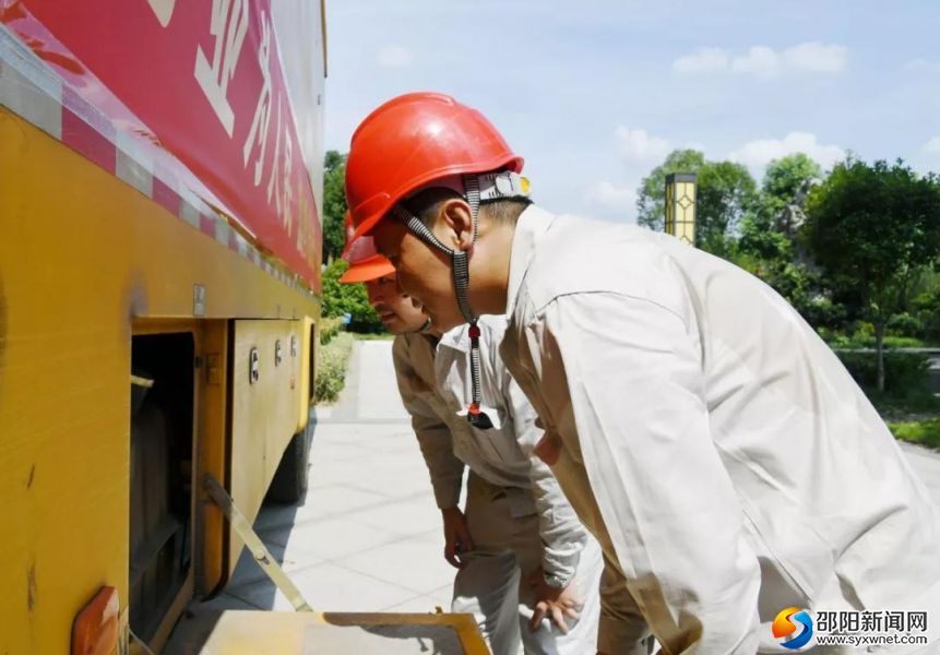 在烈日下调试UPS应急电源车