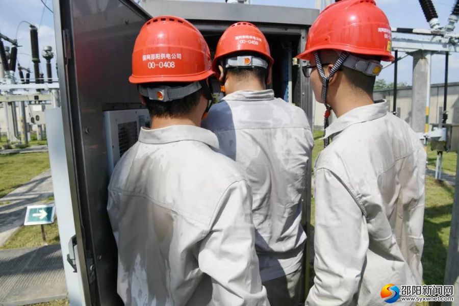 在变电站检查断路器,汗流浃背