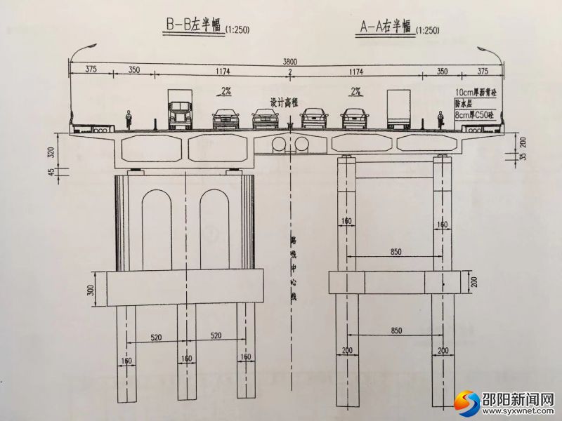 桃花桥设计双向六车道。