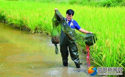 邵阳新闻网8月23日讯 8月21日,新宁县崀山镇鑫华水产生态养殖合作社“稻虾共作”基地,工作人员在稻田里收小龙虾。该合作社采取“合作社+农户+贫困户”的模式,让农户入股或务工,并帮助养虾的贫困户开挖虾田,提供养殖技术、虾苗及成虾回收服务,使贫困户经营零风险。目前,合作社已服务80余户贫困户参与“稻虾共作”。