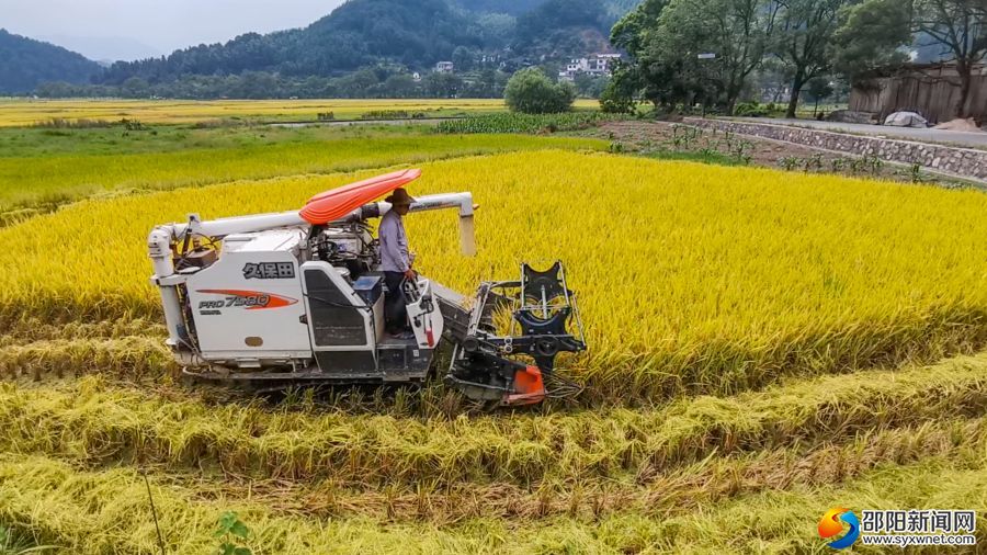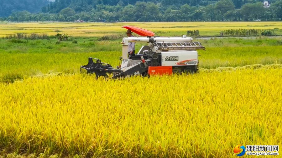 机械化收割现场。