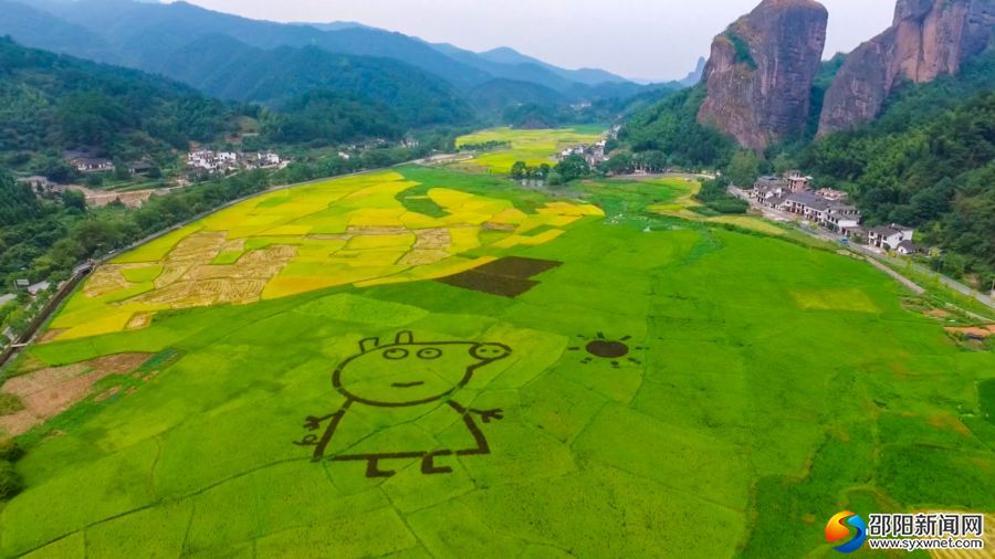 稻田艺术“小猪佩奇”。丹霞美景、丰收美事都要配齐。