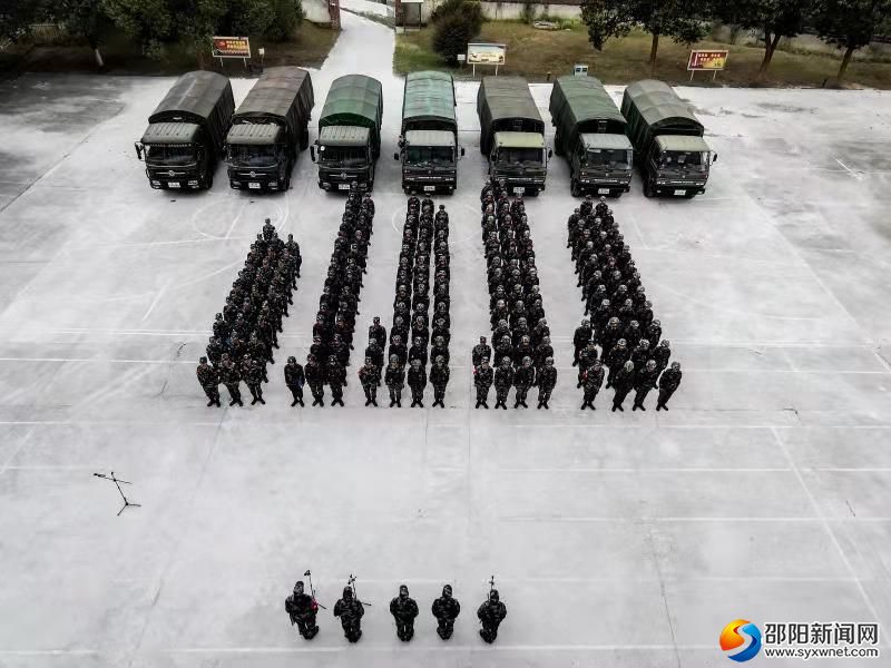 航拍武警湖南总队湘南片区特战分队第三季度“魔鬼周”极限训练动员大会现场。