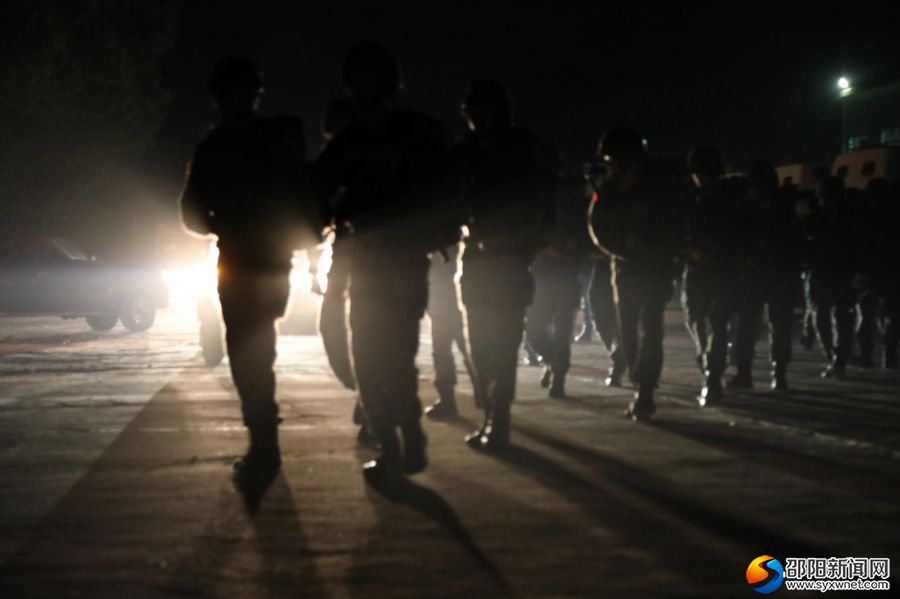 7公里武装奔袭紧急集合之灯光下的脚步。