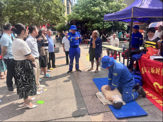应急救援演示区更是活动的一大亮点。蓝天救援队的专业救援人员为居民们演示了心肺复苏、海姆立克急救法等常见急救技能,并现场讲解消防器材的正确使用方法。通过直观的演示,居民们对应急救援有了更深刻的认识,也掌握了基本的自救互救技能。
