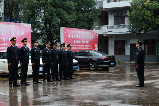邵阳新闻网11月7日讯(通讯员 宁宏旻 尹心怡)“稍息!立正!”11月3日,细雨淅沥中,邵东市魏家桥镇综合行政执法大队身着崭新制服,在镇村干部和群众的注视下开启队列会操。会操现场,雨水打湿了队员们的新制服肩头,却未撼动他们挺拔的身姿。从整齐划一的队列变换,到规范标准的执法礼仪展示,每一个动作都透着严谨与专注,铿锵步伐中尽显纪律严明的作风。这份不惧风雨的精气神,不仅赢得全场热烈掌声,更以榜样力量点燃了镇村干部的工作热情,让“新形象扛起新担当”有了更具体的诠释。