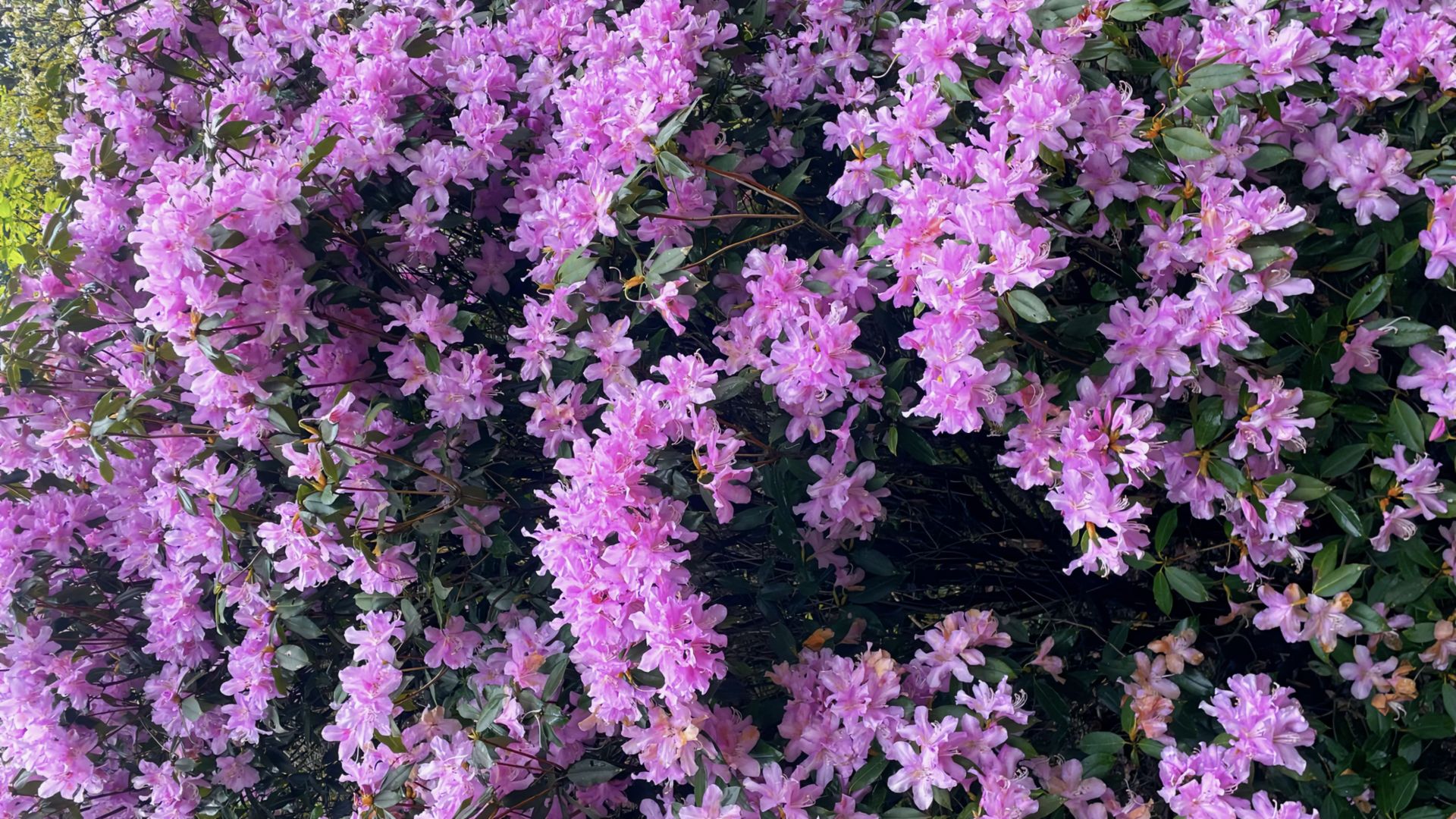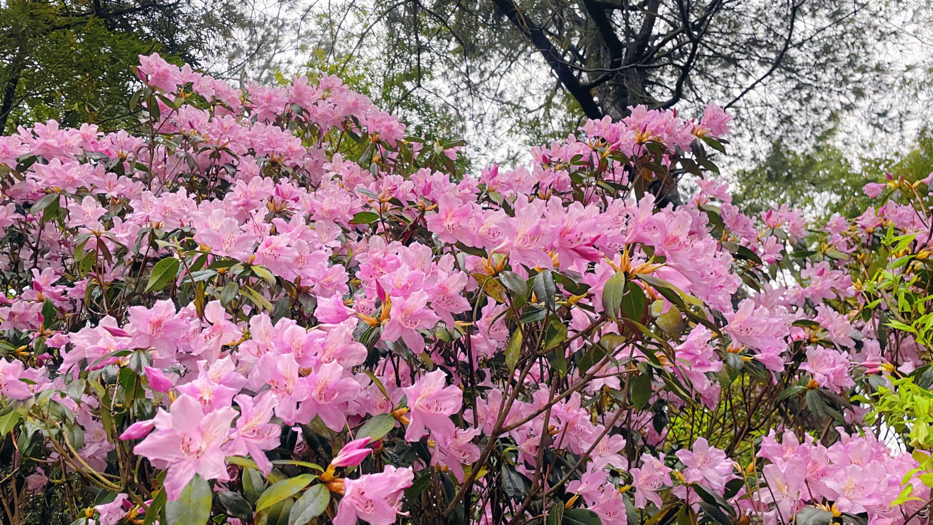 邵阳新闻网4月13日讯(通讯员  袁立龙  刘红琼)最美人间四月天,位于隆回县高平镇上坪村的野生鹿角杜鹃迎来了盛花期,含香吐蕊的鹿角杜鹃静静矗立,将山峦装扮得春意盎然燃,生机勃勃。白的似雪,粉的似霞,紫的像烟,一团团、一簇簇、一束束争奇斗艳,阵阵风儿拂过,花香四溢,沁人心脾,飘落的花瓣洒满林间,仿佛是那个画师不小心打翻了调色盘,五颜六色肆意涂染,自然灵动,美得醉人。