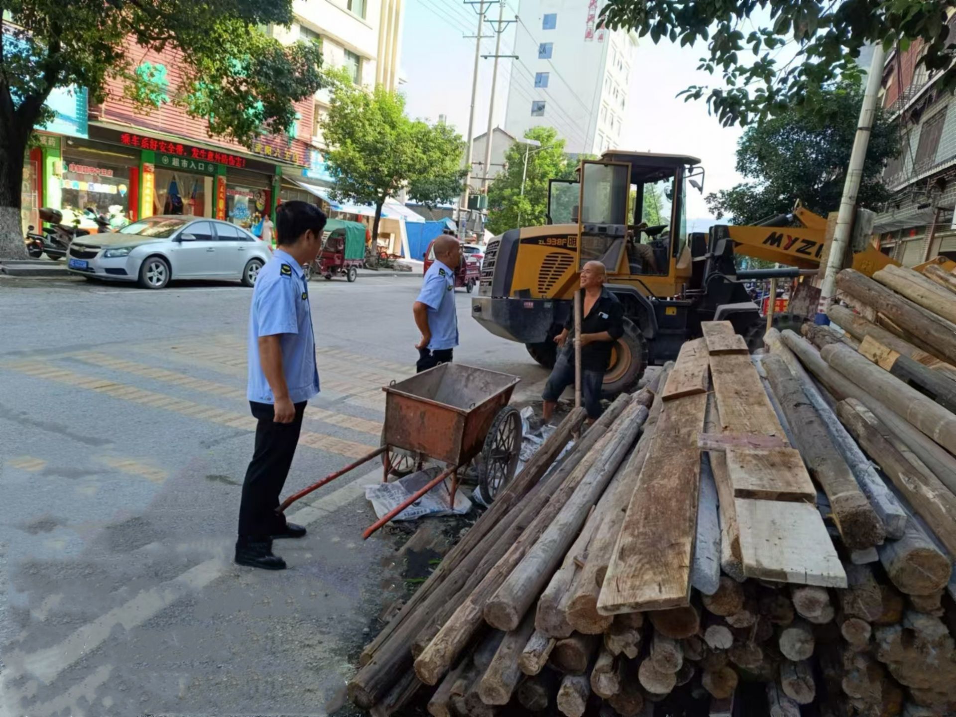 收到整改通知书后,有关负责人立即组织工人,并积极联系铲车对占道泥沙、木料等进行转移、搬运工作,同时,武阳镇派出城管中队对施工地点进行定点巡逻,提醒路人注意安全,并持续跟进现场整改情况,确保期限内整改到位。
