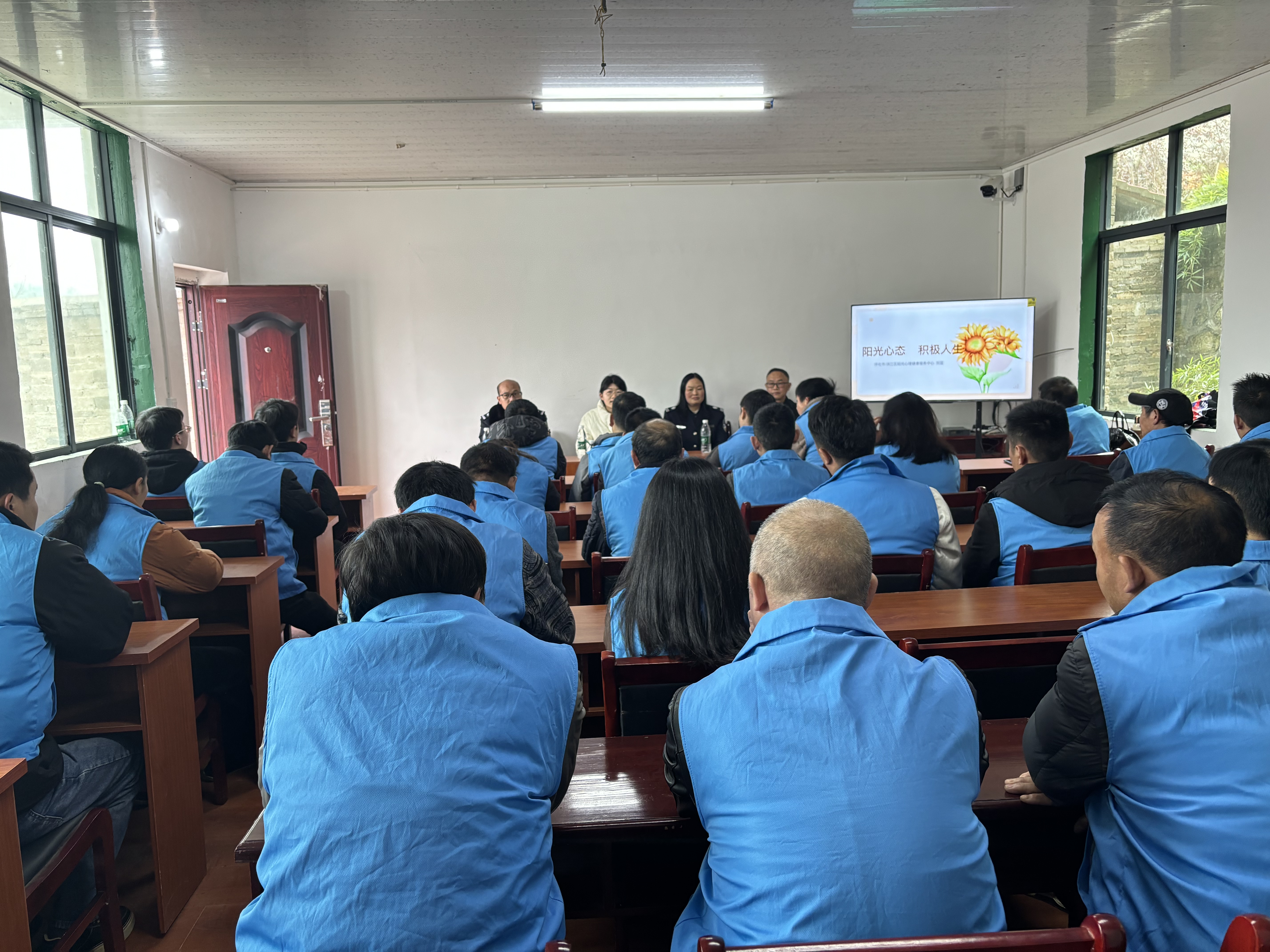 学习结束后,还邀请怀化市红十字阳光心理健康服务中心心理指导师刘蓝开展了一堂《阳光心态 积极人生》的心理辅导讲座。通过以提问的形式向在座的社区矫正对象了解到其如何看待这三个问题:“什么是阳光心态”“什么能使人快乐”“不快乐的根源是什么”。然后进一步指出并要求所有的社区矫正对象树立正确的阳光心态,一是接纳现实,减少内耗;二是认知重塑,转换视角;三是小布行动,积累掌控感;四是情绪管理,与负面情绪共处。通过呼吸放松法、正视并接受自己的情绪、撰写情绪日记记录等方式更好地理解和管理情绪。五是取得社会支持,重塑健康关系网。还要求所有社区矫正对象提高表达能力,建立良好的人际关系,寻找正确的心理援助与咨询渠道。