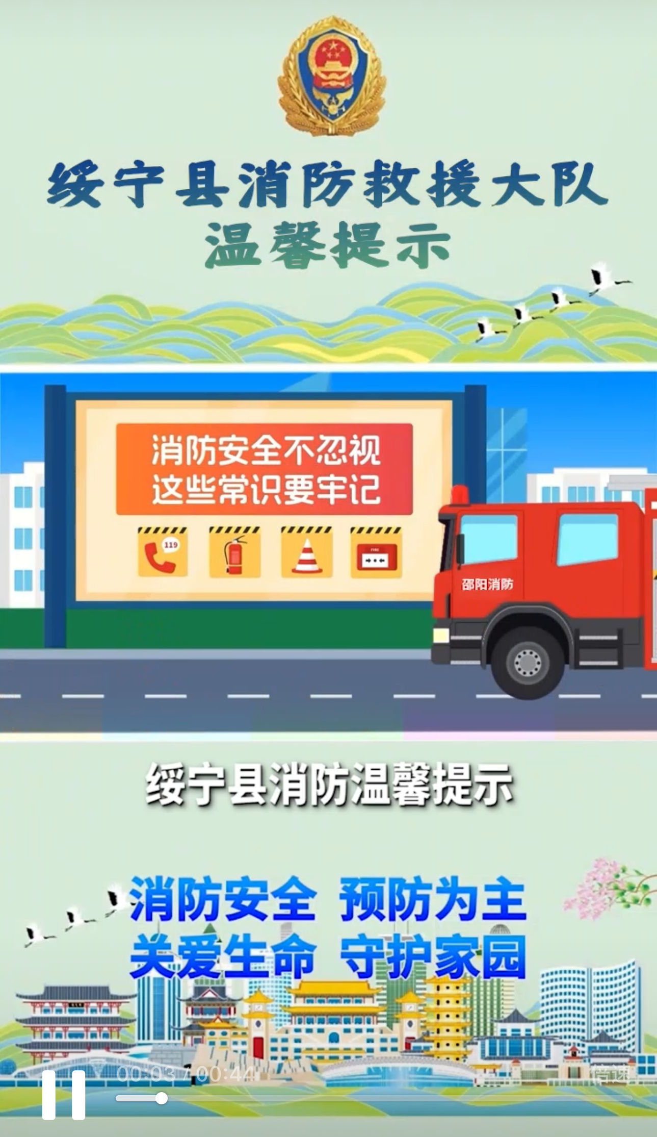 邵阳新闻网11月13日讯(通讯员 何静)为进一步拓宽消防宣传覆盖面,增强群众消防安全意识和自救能力,11月12日,绥宁县消防救援大队联合辖区通信运营商,精心策划制作系列消防警示视频,并将其投放至全县用户的来电提醒界面,让消防安全知识以更直观、更易触达的方式走进千家万户。