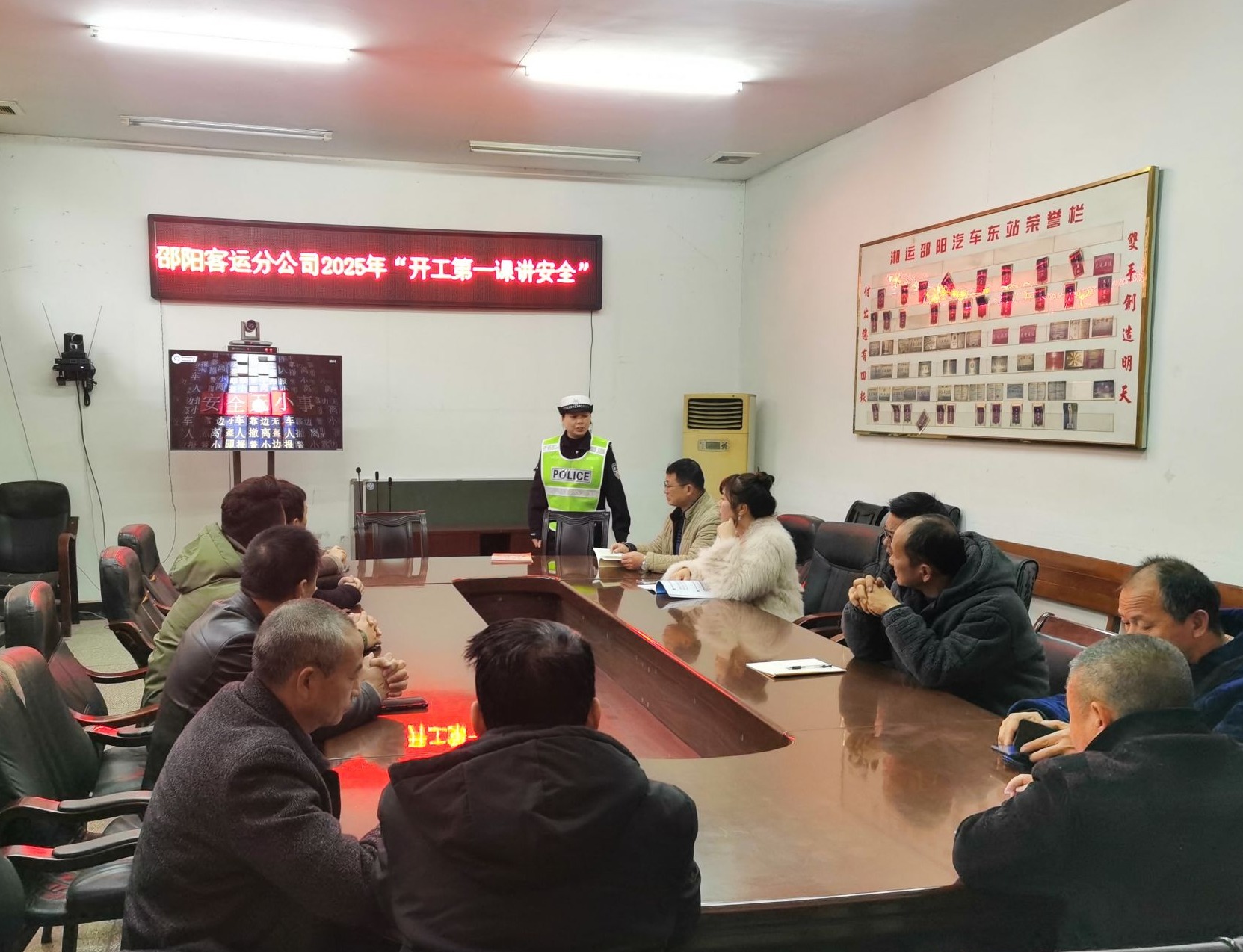 邵阳新闻网2月6日讯(通讯员 孙静 张春花)春节过后,各行各业逐步复工复产。客运企业再现返工返厂高峰,为加强运输车辆交通安全主体责任,从源头上预防和减少道路交通事故发生,2月6日,双清交警结合工作实际,深入辖区客运企业,对企业负责人、管理人员、驾驶人及员工开展“开工第一课”交通安全宣传活动,筑牢交通安全防线。