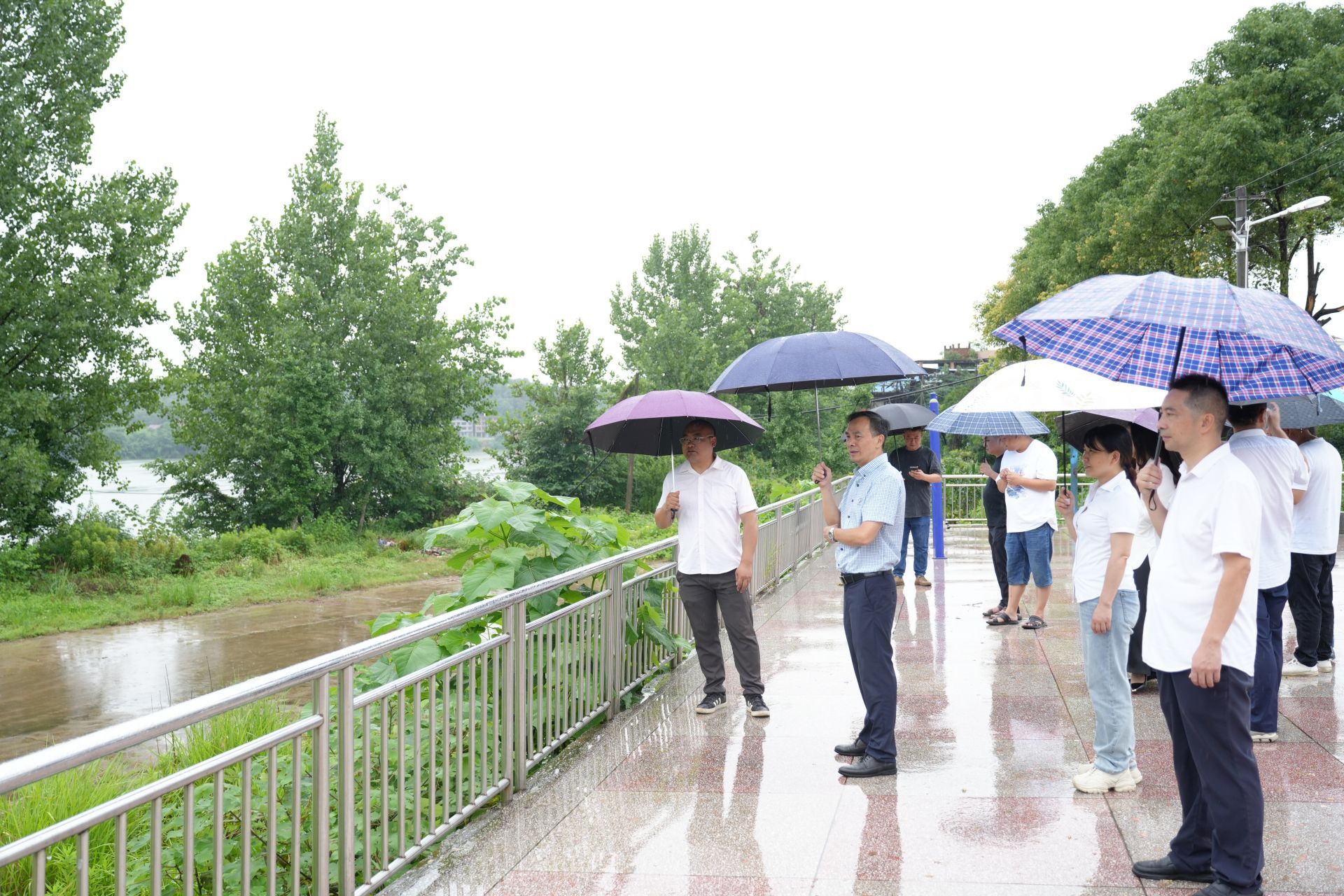 活动最后一站聚焦民生安全与基础设施建设,代表们深入金台社区沿河段,对街道防洪堤项目建设进展进行了现场调研,详细了解工程规划、施工进度及防汛功能。