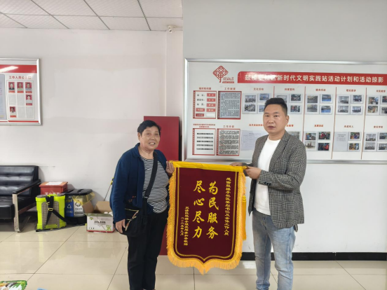 邵阳新闻网9月28日讯(通讯员 刘超) 9月26日,双清区东风路街道鼓楼亭社区居委会暖意融融,居民戴奶奶将一面印有“尽心尽力,为民服务”金色大字的锦旗,郑重地交到社区书记姜彪手中,感激之情溢于言表。这面锦旗,不仅承载着一位祖母的深深谢意,更是对社区工作人员长期以来贴心服务、真情帮扶居民的高度认可与生动诠释。