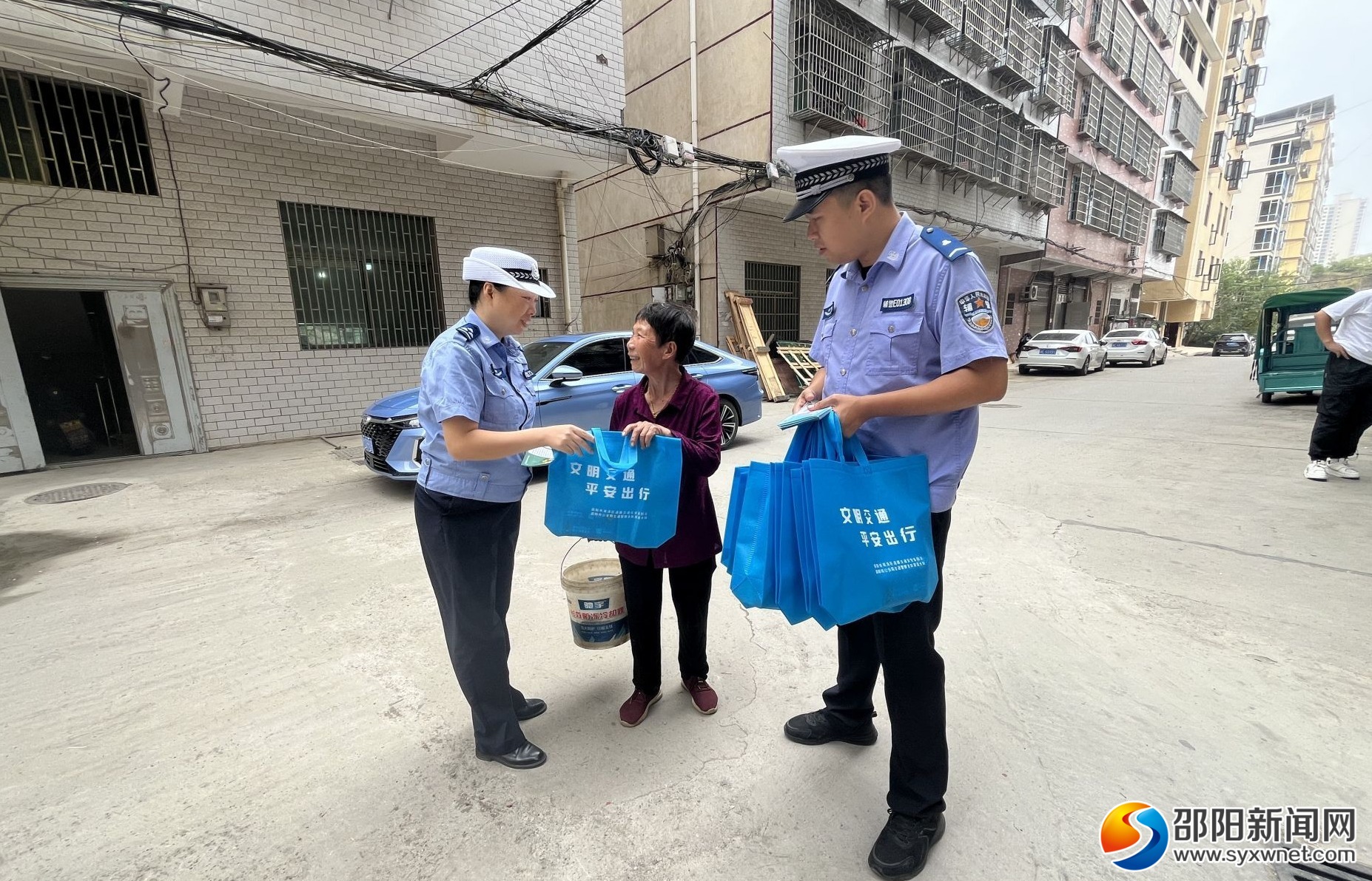 在财桥村,双清交警走村串巷,带着宣传资料和定制宣传品深入村民家中与老人拉家常,普及“一老一小”出行安全常识,叮嘱走路要靠边,遵守红绿灯以及“一盔一带”重要性。并赠送了印有安全提示的手提袋、抽纸等实用物品。“交警上门讲安全,还送来这么实用的礼物,我们一定把交通安全记在心里!”财桥村村民李大妈拿着刚领到的手提袋高兴地说。
